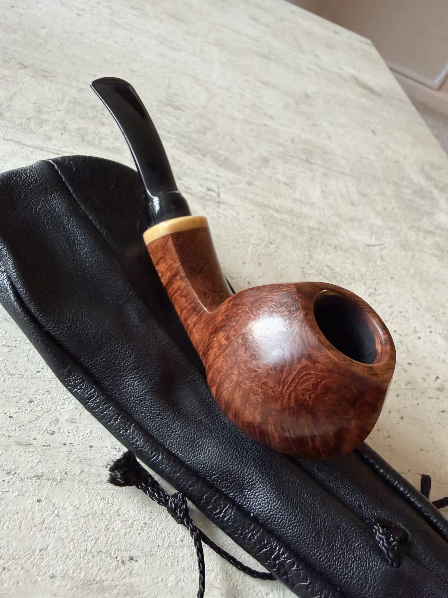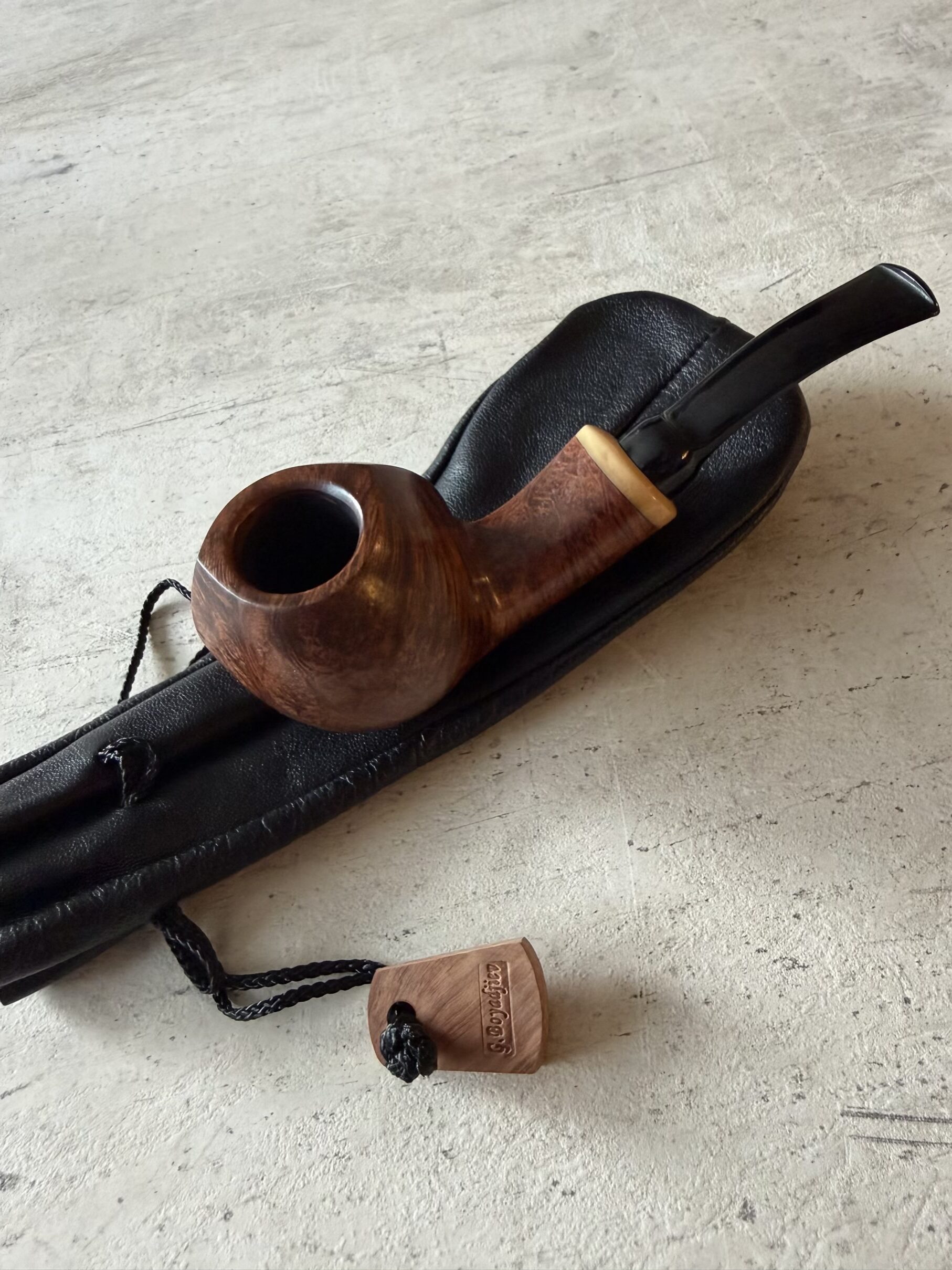 G. Boyadjiev blowfish pipe with tagua nut ring. Pipe A815.