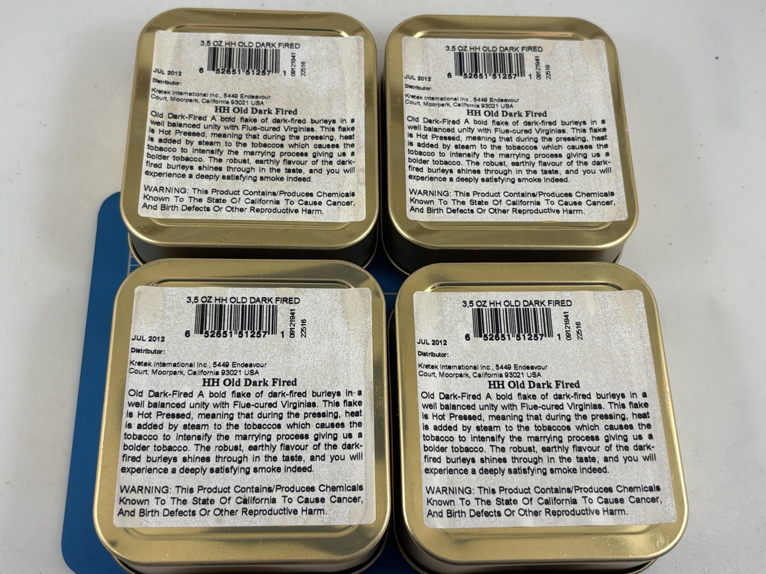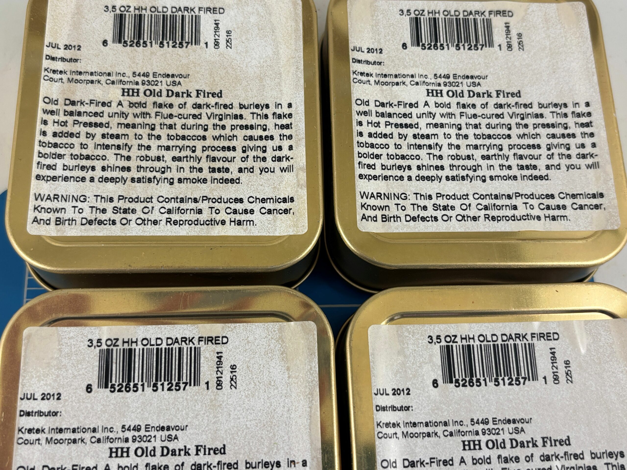 Lot of 4 Very Nice Sealed 2012 Mac Baren's HH Old Dark Fired 3.5oz. Tins.