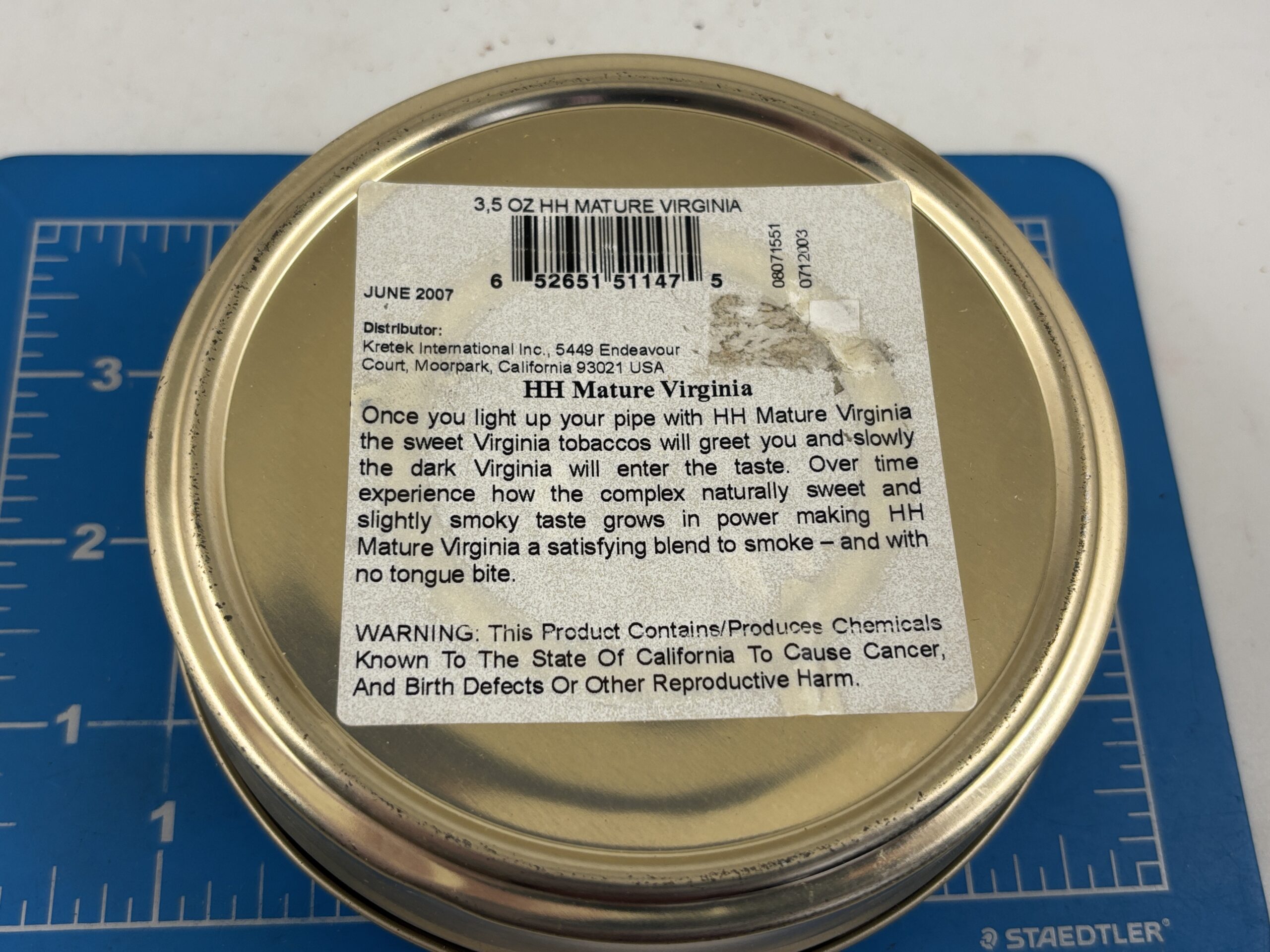 Very Nice Sealed 2007 Mac Baren's HH Mature Virginia 3.5oz. Tin