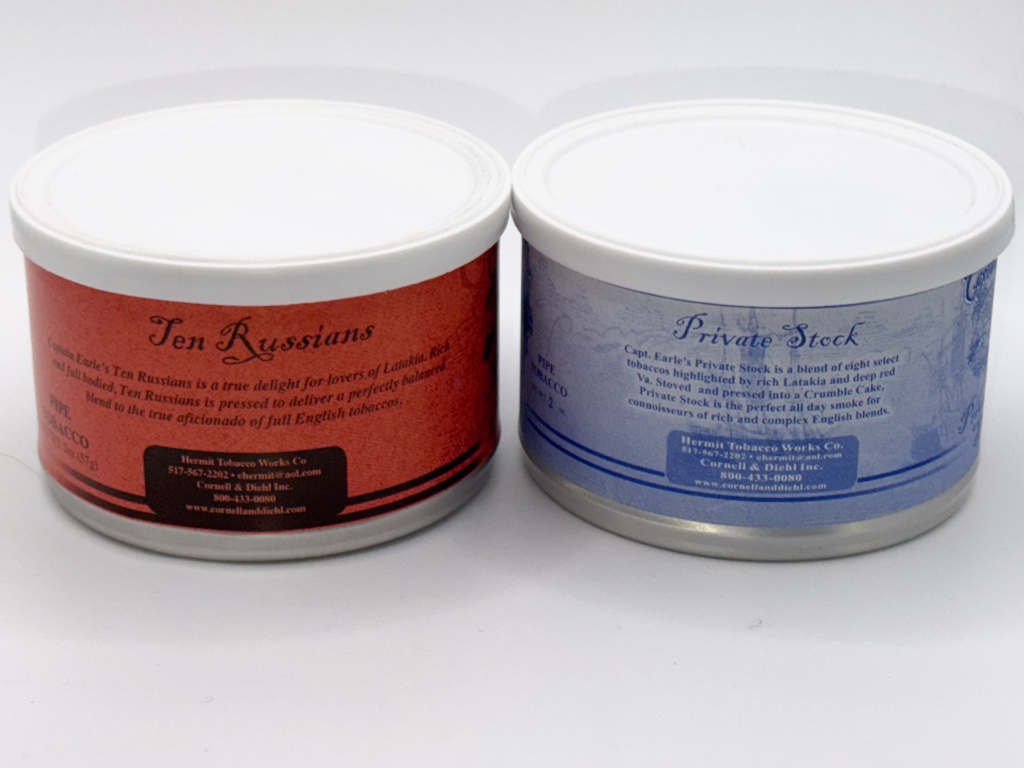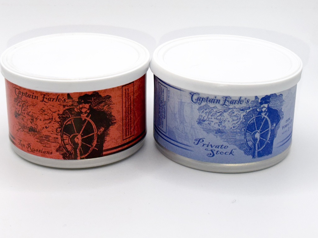 Two unopened tins of Captain Earle's blends from my private collection.