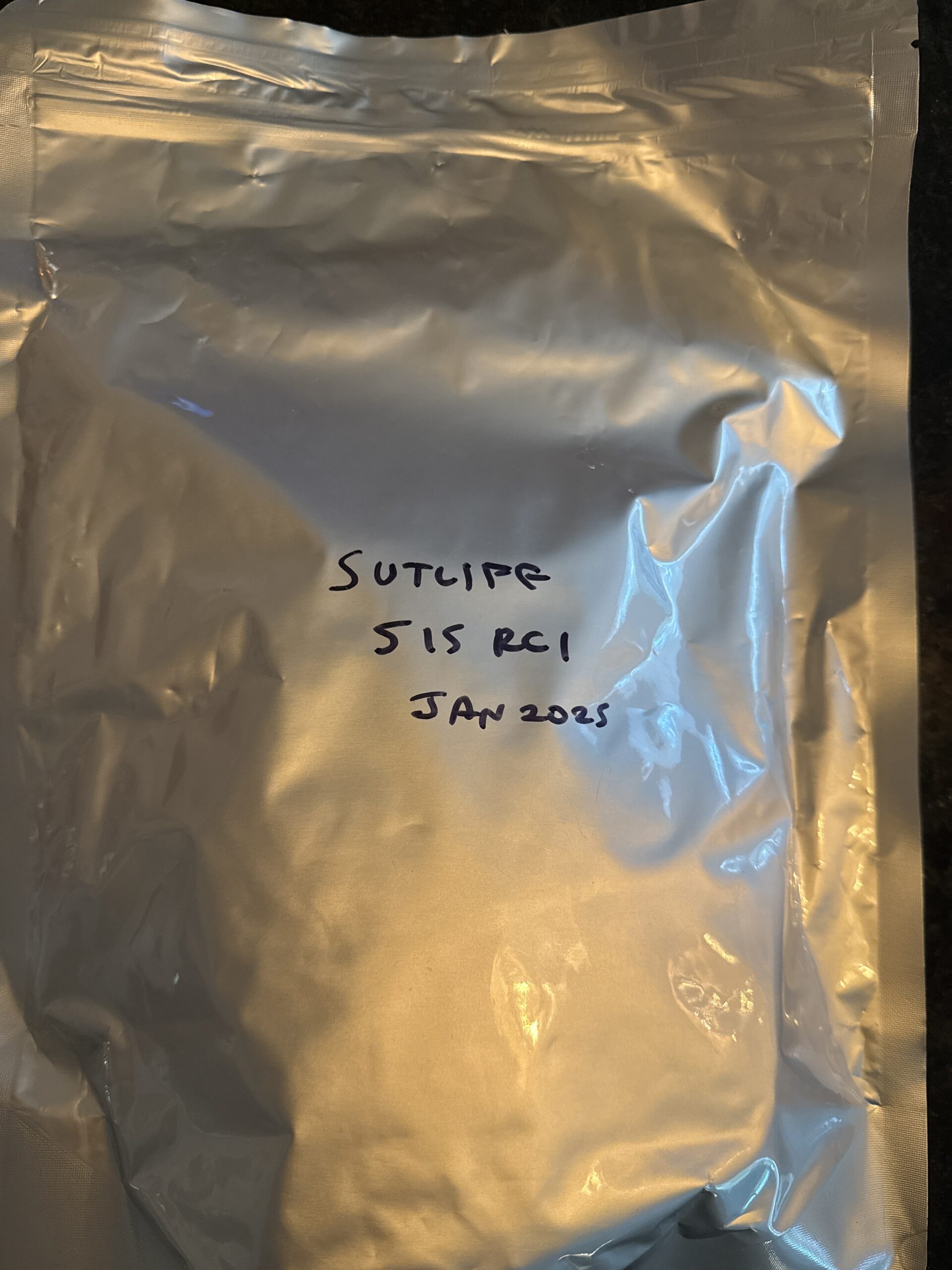 Heat sealed Mylar bag stored in ideal cellaring conditions.