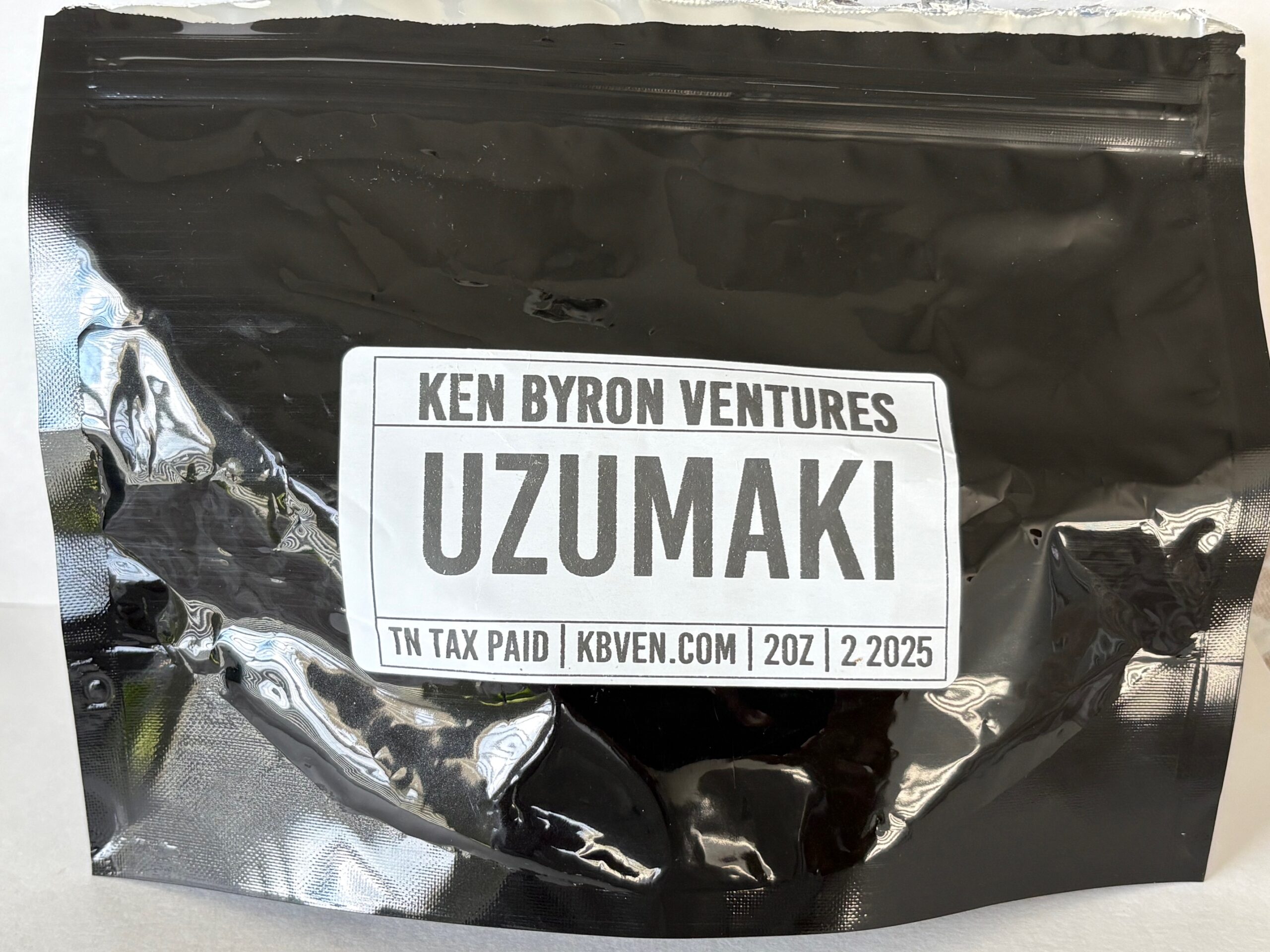 Unsealed pouch of 2025 Ken Byron Ventures Uzumaki approximately 1.8 ounces.