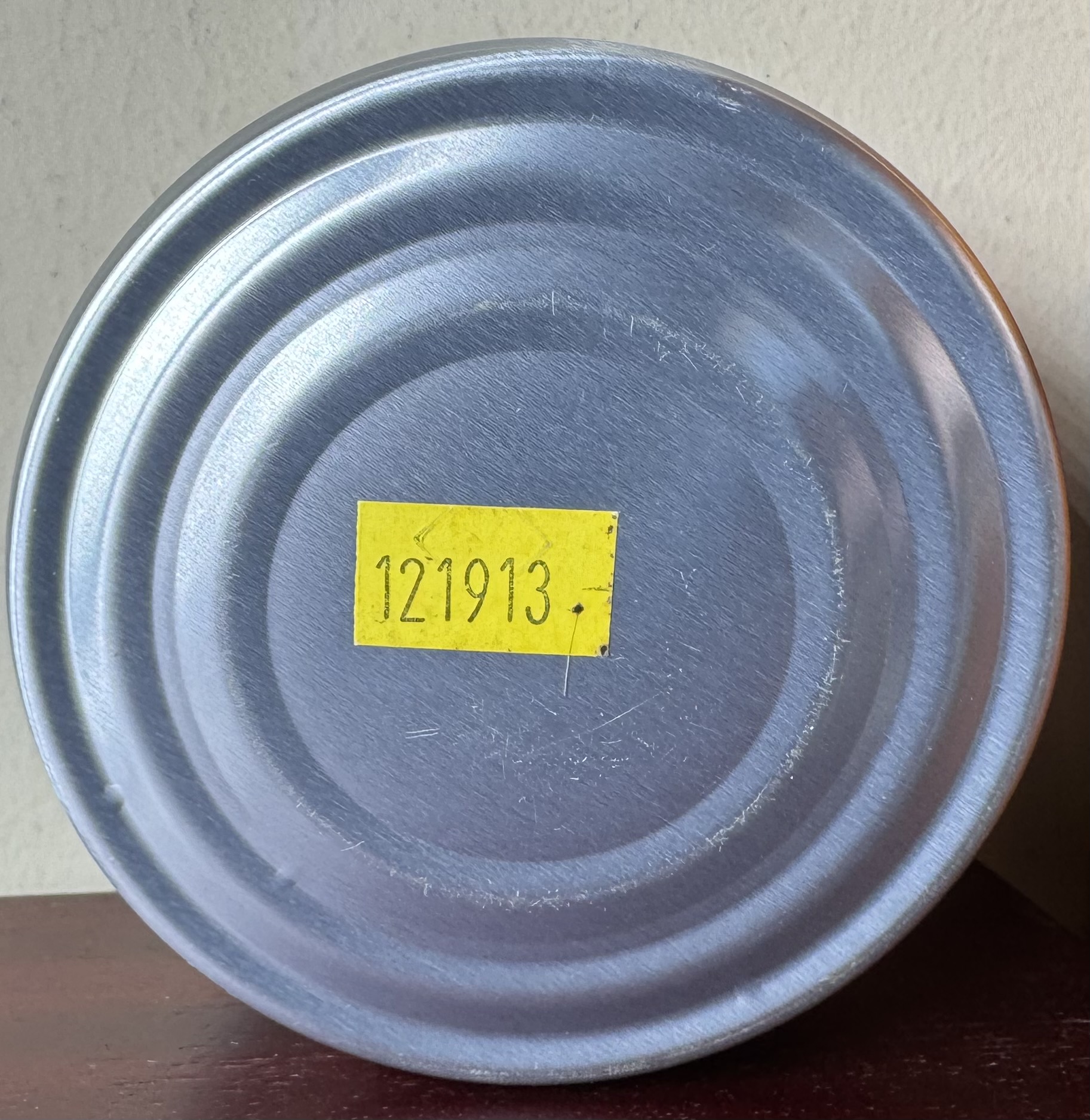 The tin is a bit swollen on the bottom but all of the seals are in tact.