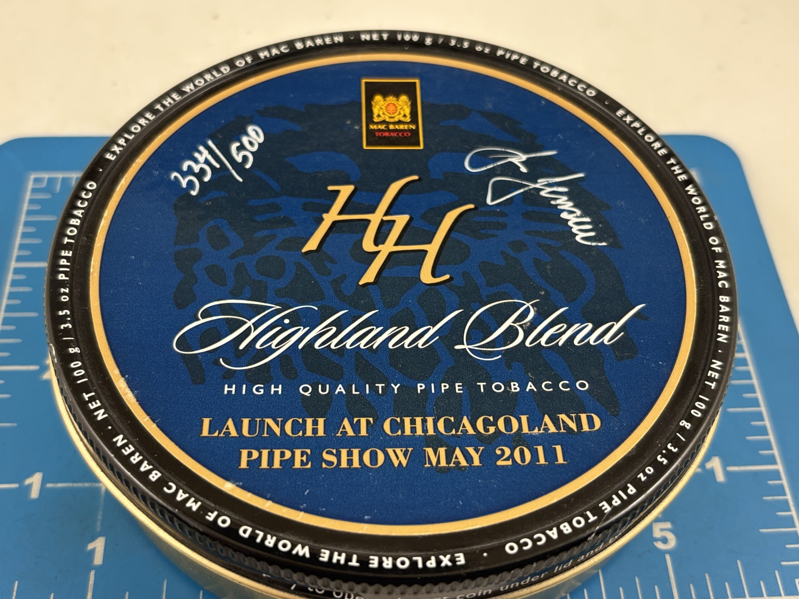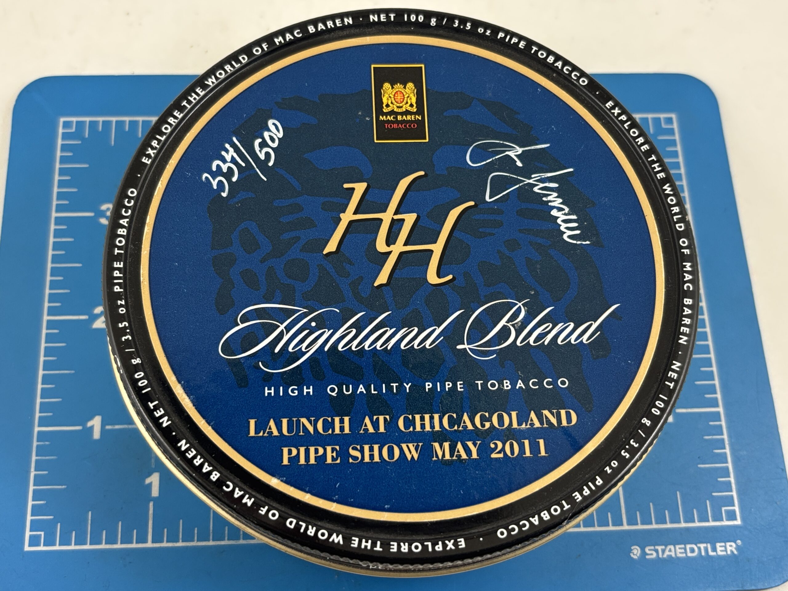 Very Nice Sealed RARE 2011 Mac Baren HH Highland Blend Signed Limited Edition 334/500 Lunch at Chicagoland Pipe Show May 2011 3.5oz. Tin