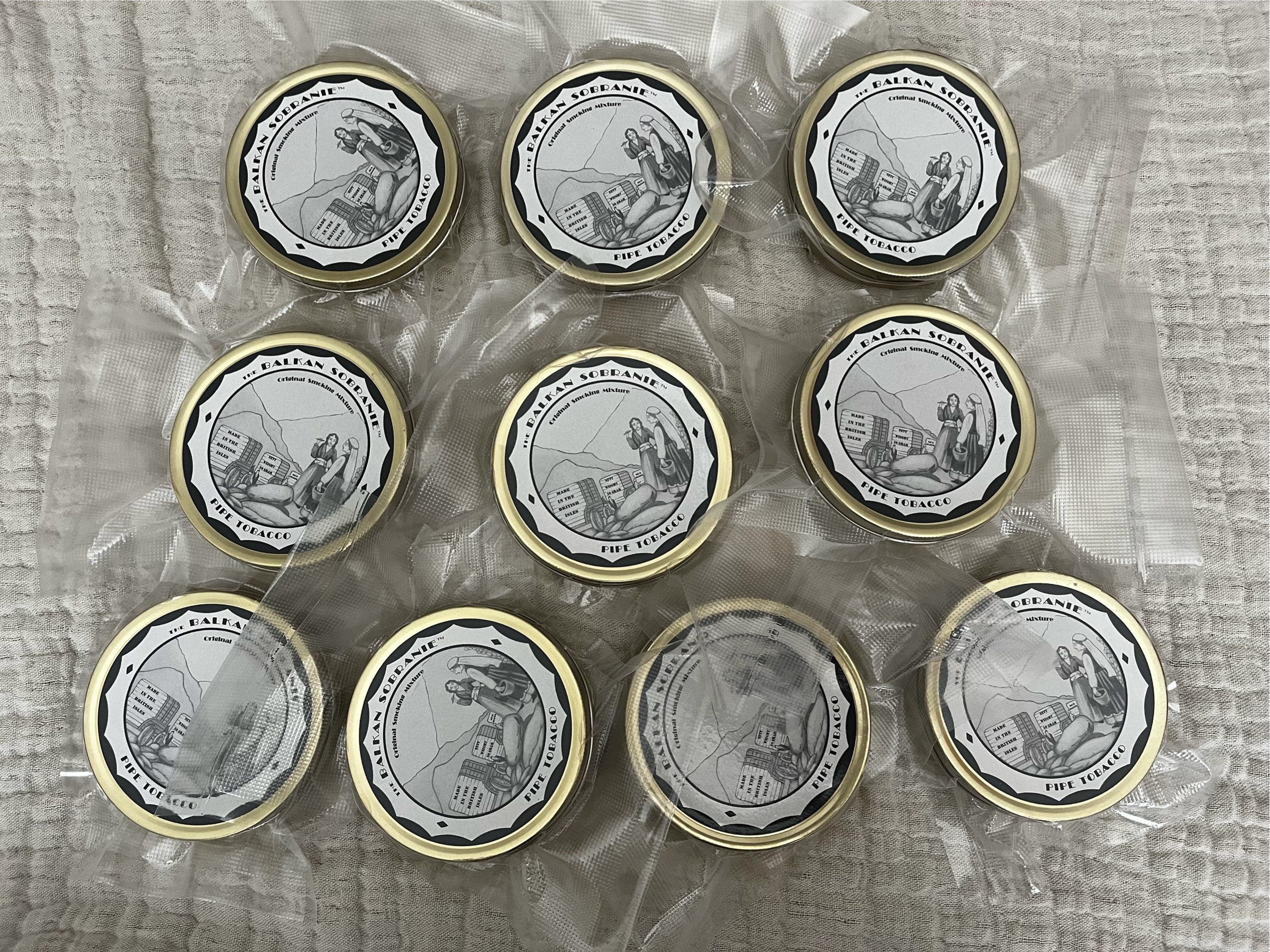 10 unopened and vacuum sealed 2oz tins of Balkan Sobranie from 2019.