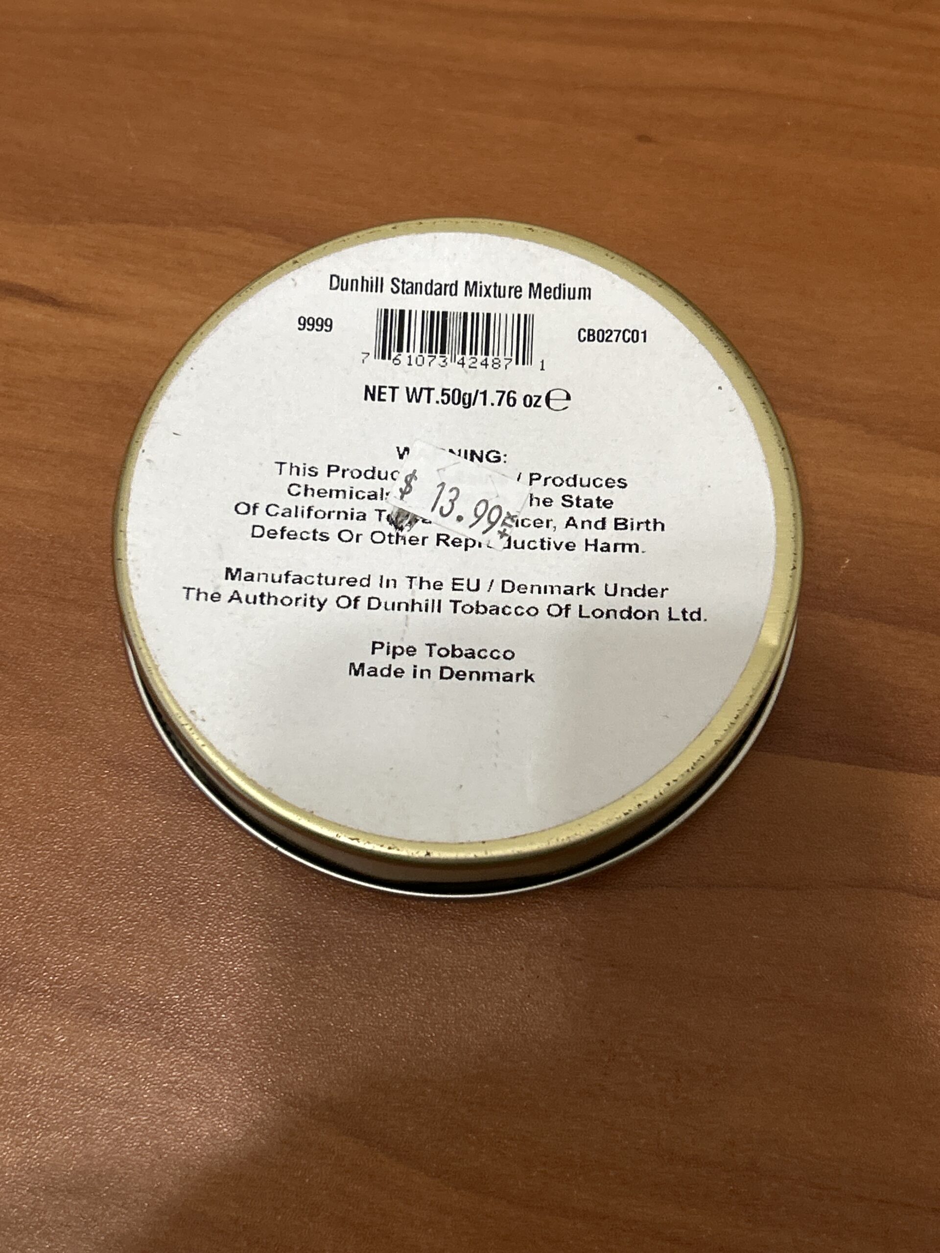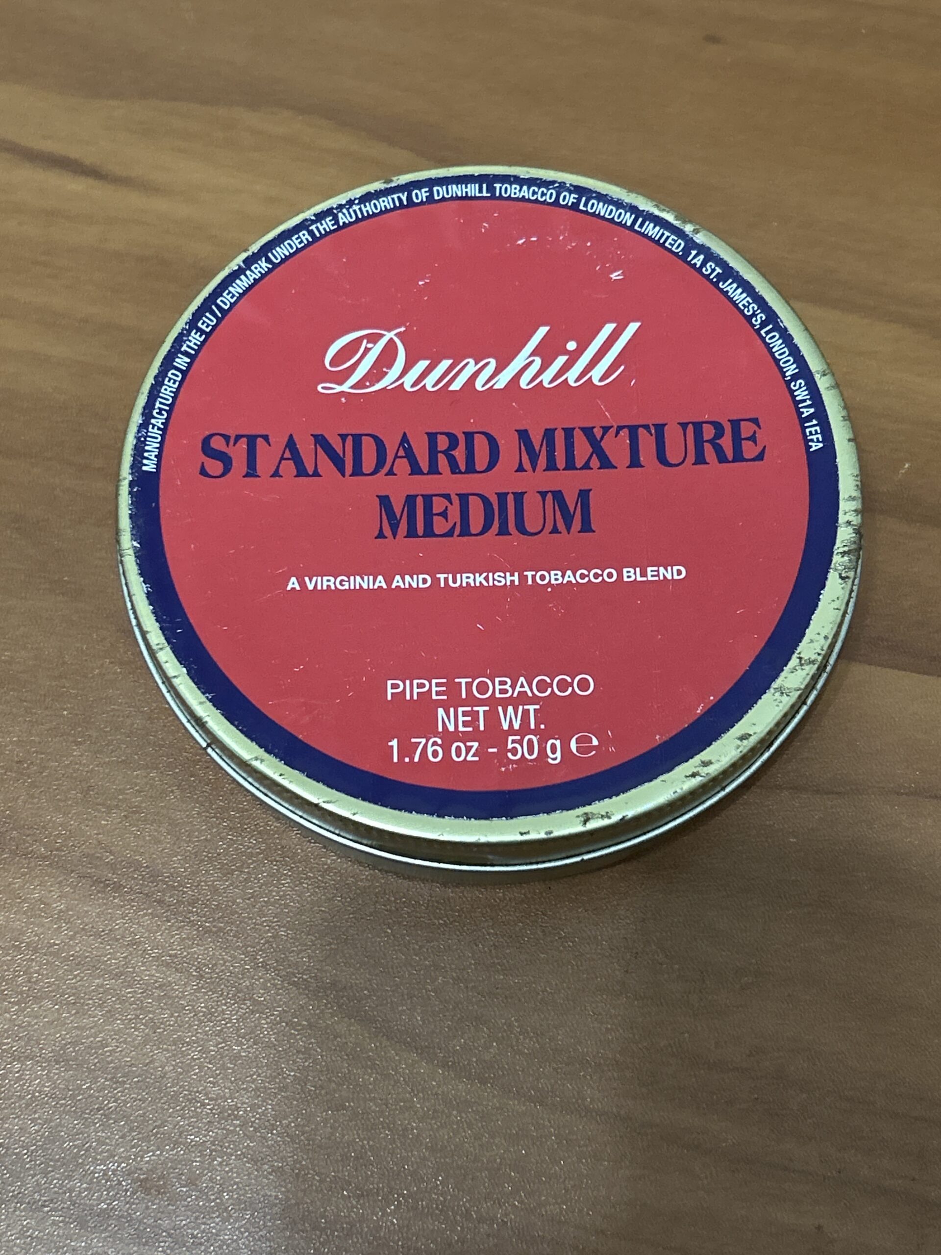 Dunhill standard mixture medium (2007), 50 gr sealed tin, has been stored in a temperature and humidity controlled environment, 3 day no reserve auction