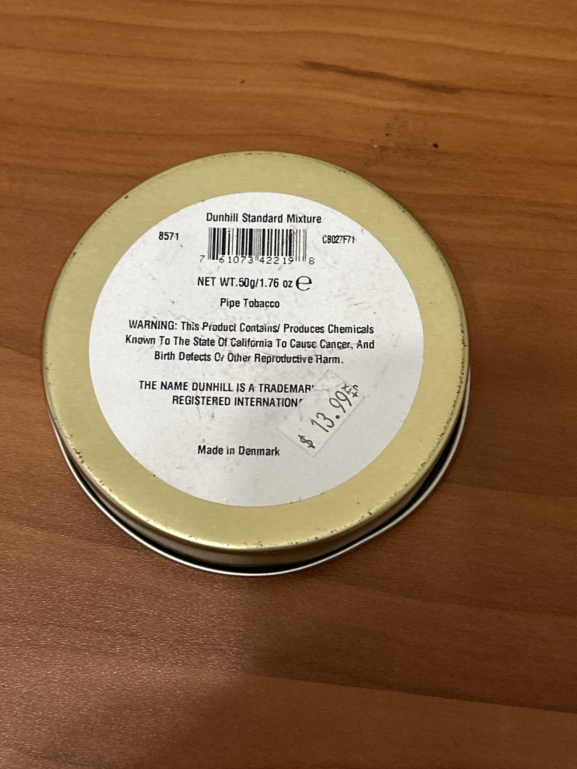Dunhill standard mixture (2007), 50 gr sealed tin, has been stored in a temperature and humidity controlled environment, 3 day no reserve auction
