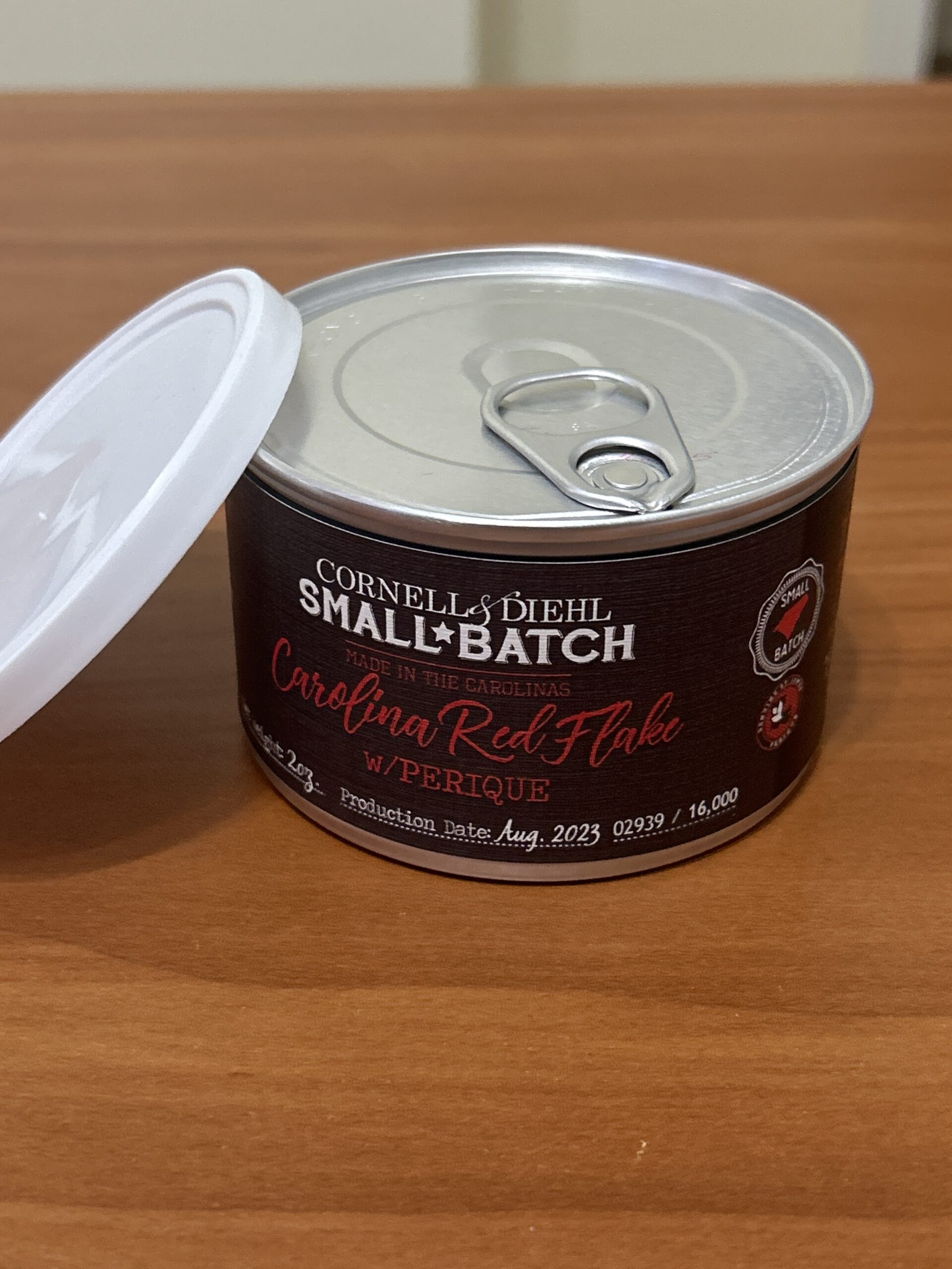 Carolina Red Flake w Perique (2023), 2 oz sealed bulging tin