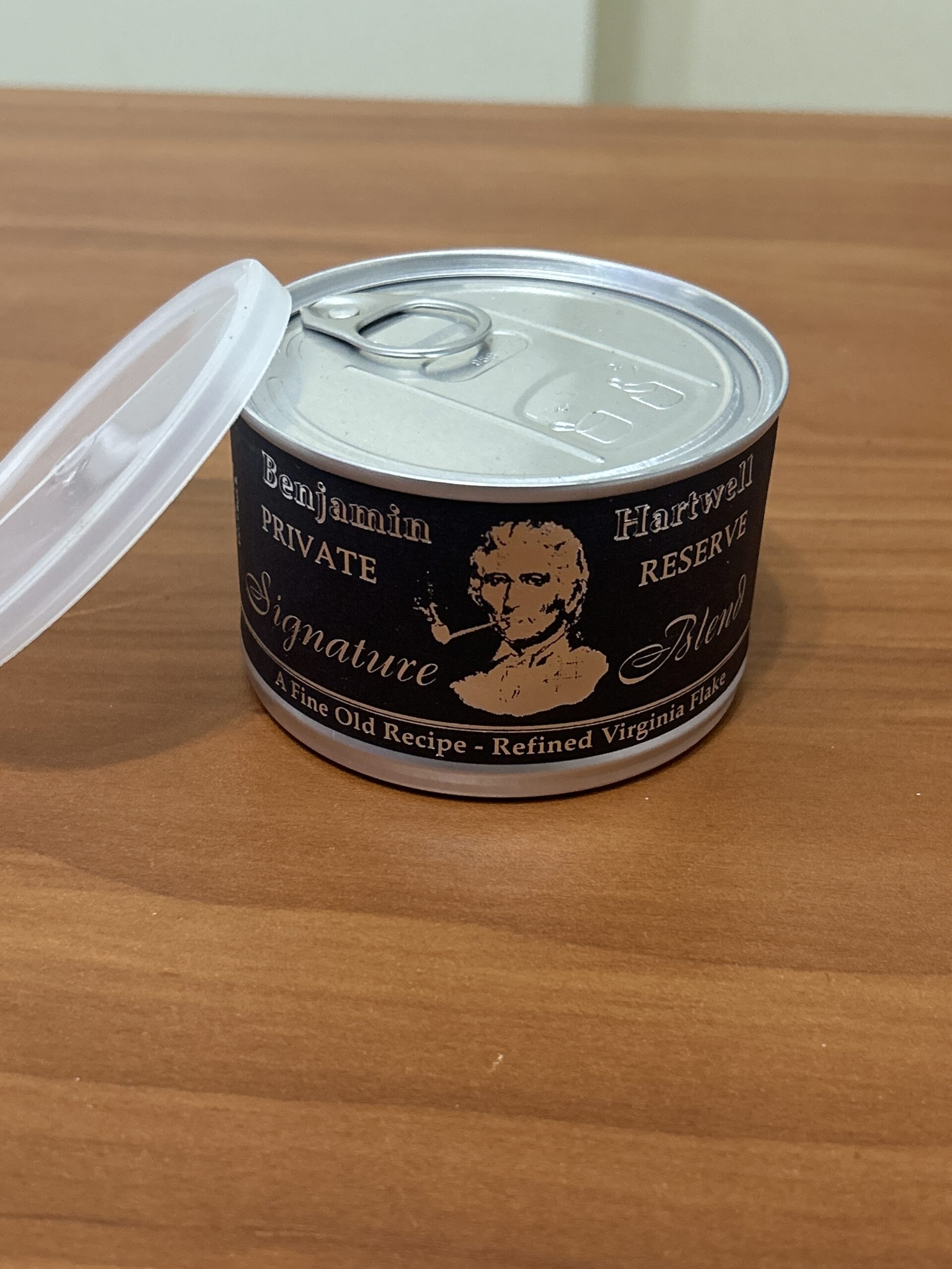 Benjamin Hartwell, Signature Blend (McClelland), dated 1999, 50 gr bulging sealed tin, has been stored in a temperature and humidity controlled environment, 3 day no reserve auction