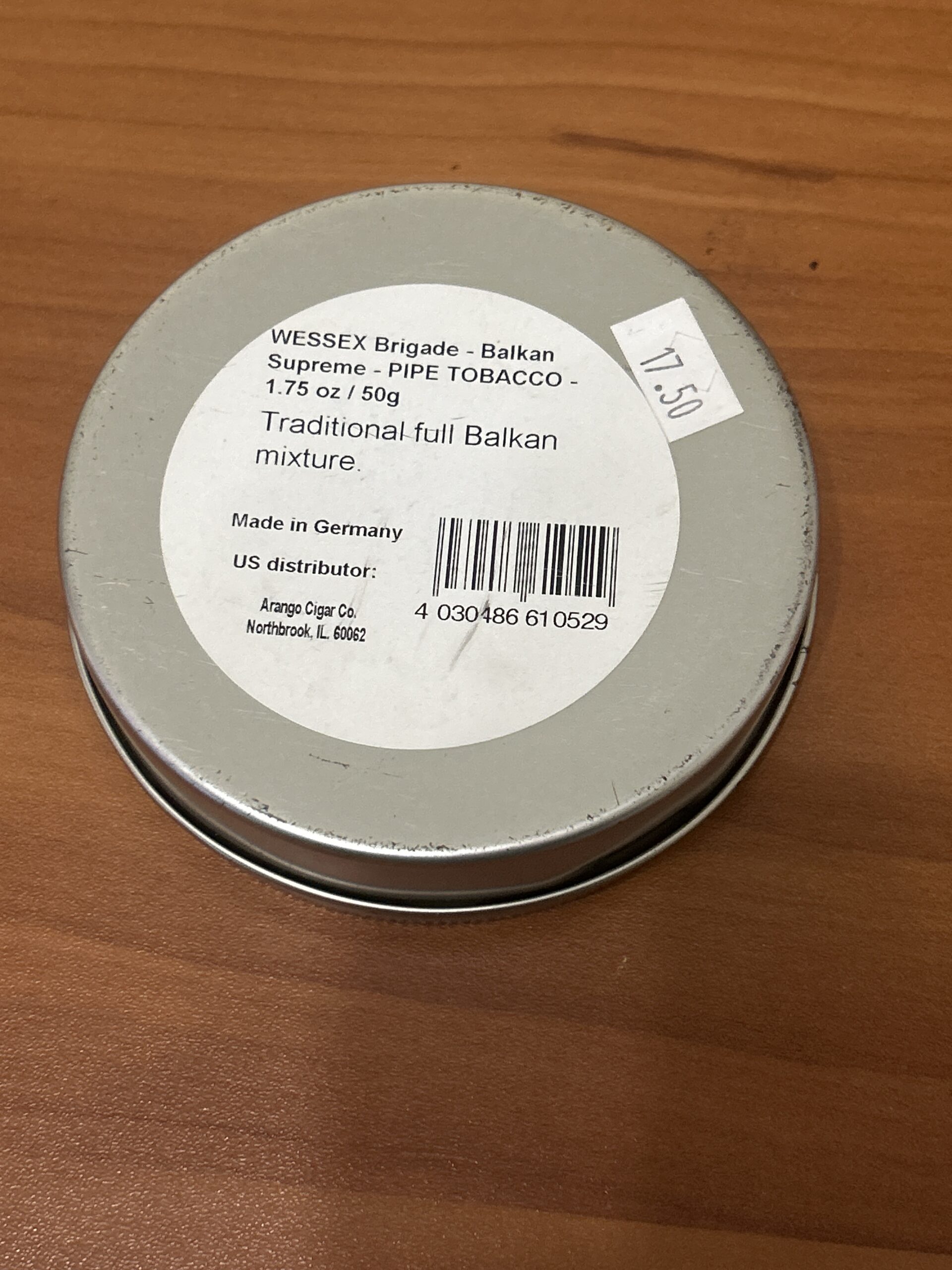 Wessex, Balkan Supreme, 1.75 oz sealed tin, has been stored in a temperature and humidity controlled environment, 3 day no reserve auction