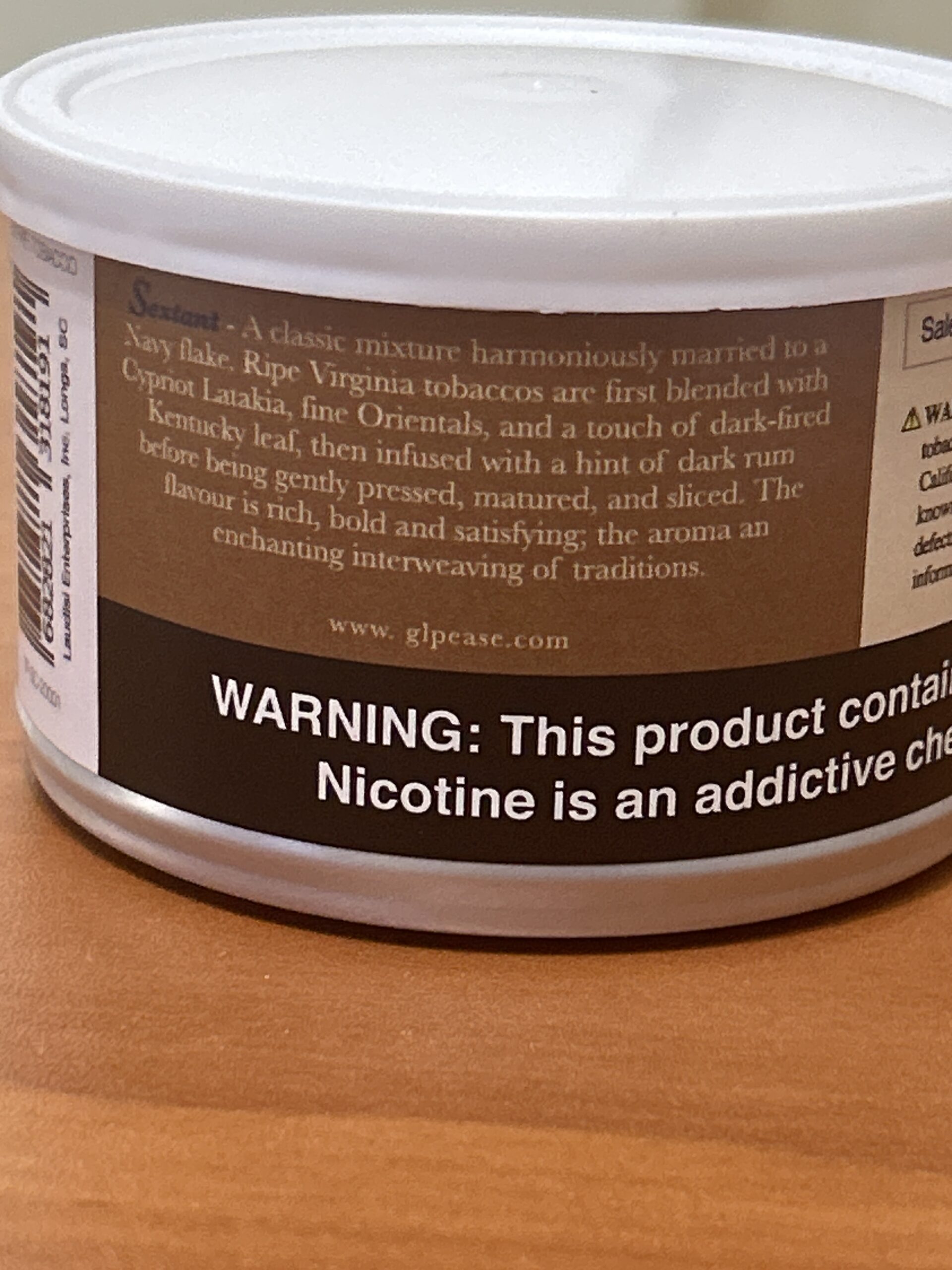 Sextant by G.L. Pease (dated 2020), 50 gr sealed bulging tin. Has been stored in a temperature and humidity controlled environment. 3 day no reserve auction.
