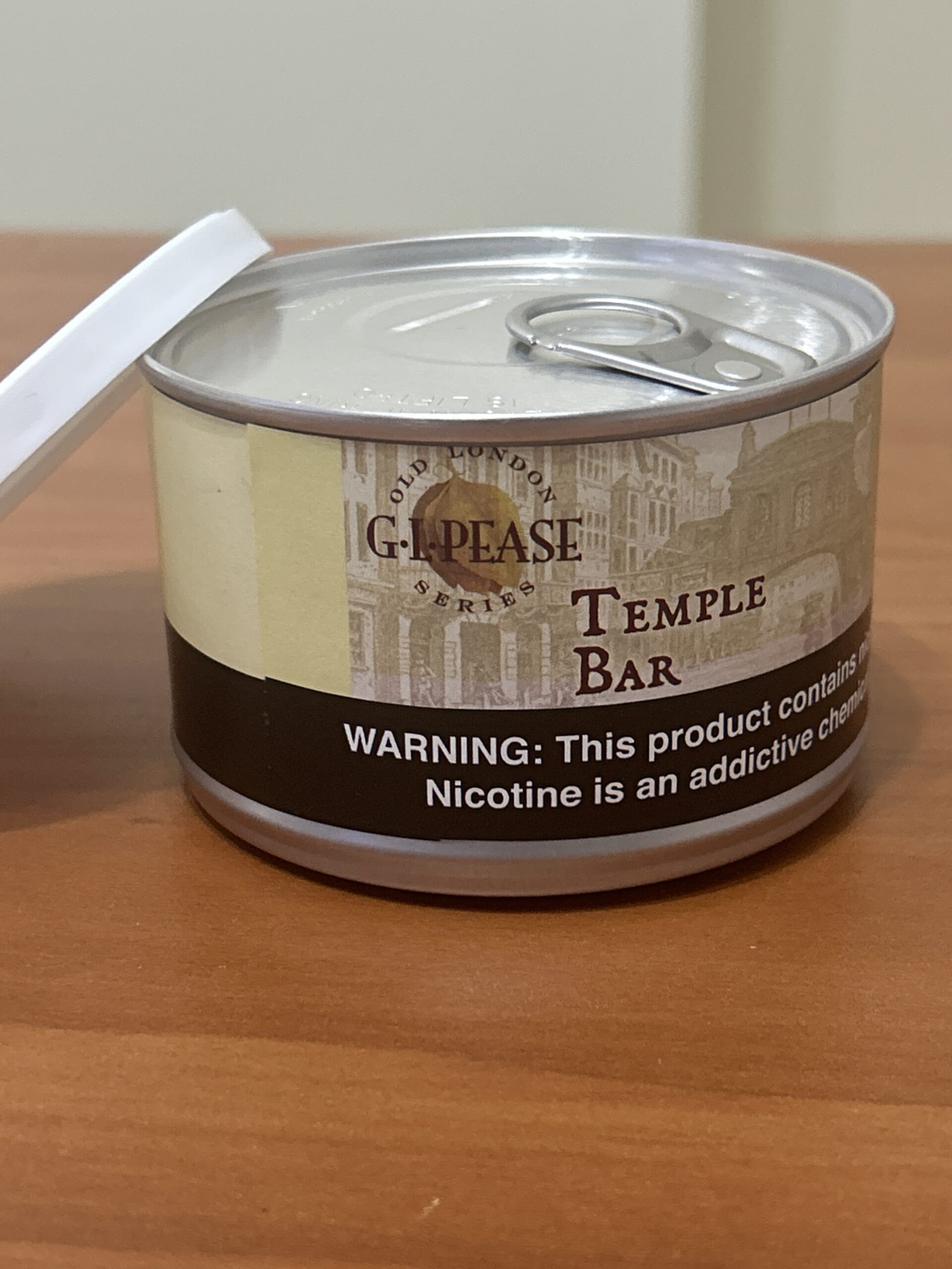 Temple Bar by G.L. Pease (dated 2020), 50 gr sealed bulging tin