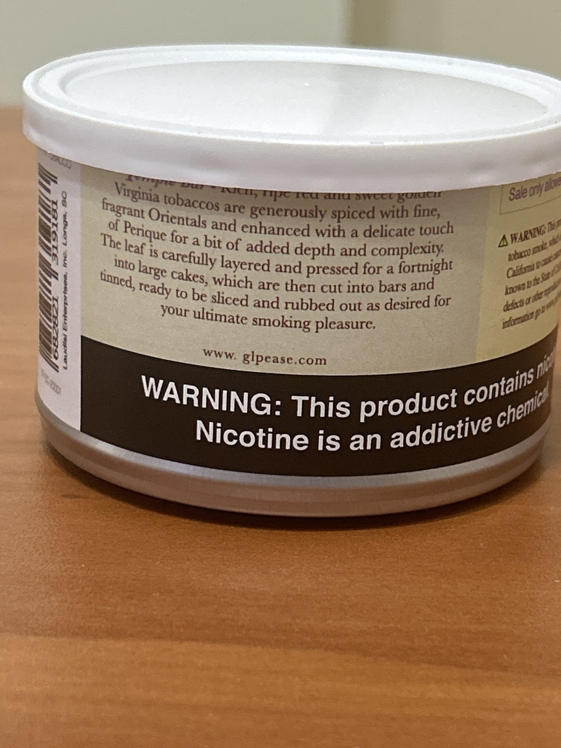 Temple Bar by G.L. Pease (dated 2020), 50 gr sealed bulging tin. Has been stored in a temperature and humidity controlled environment. 3 day no reserve auction.