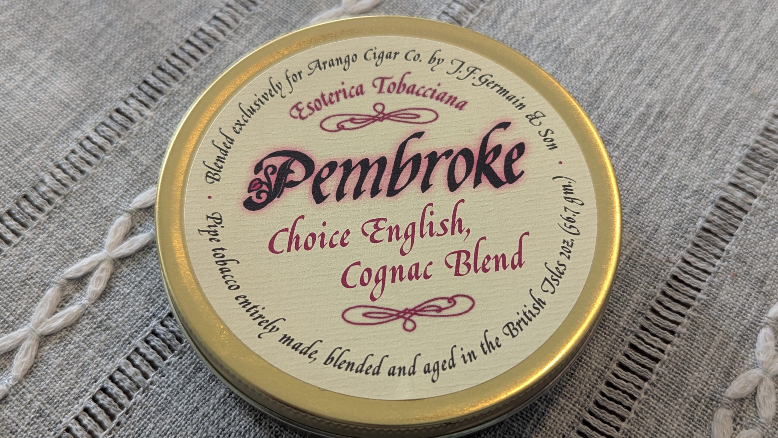 1 sealed tin of 2024 Esoterica Pembroke. A wonderful English blend with a hint of cognac, and the unmatched quality of Esoterica made by Germain.