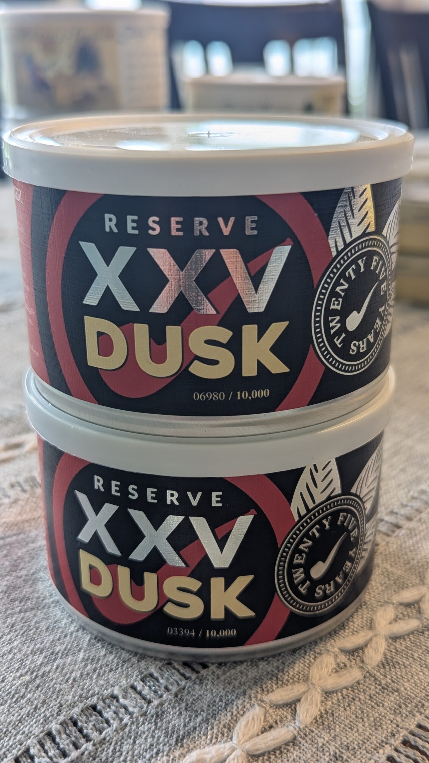 Two sealed 2 oz tins for 2025 Cornell & Diehl XXV Reserve: Dusk (4 oz total). This small batch was made for Smokingpipes 25th Anniversary.