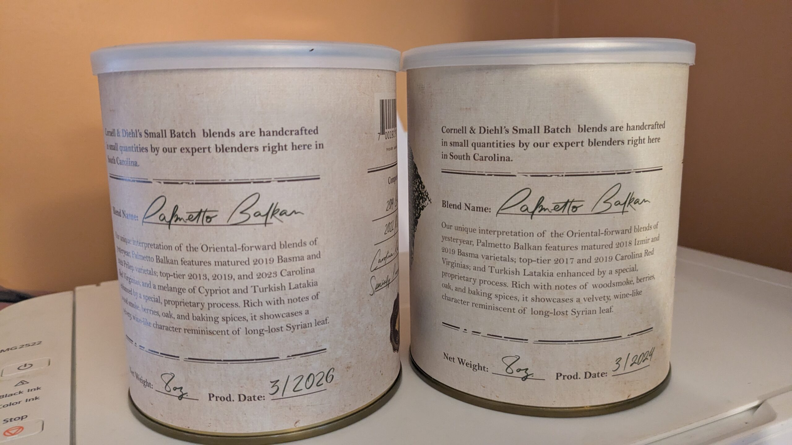 2 8oz. tins 2024 & 2026 Cornell & Diehl Palmetto Balkan