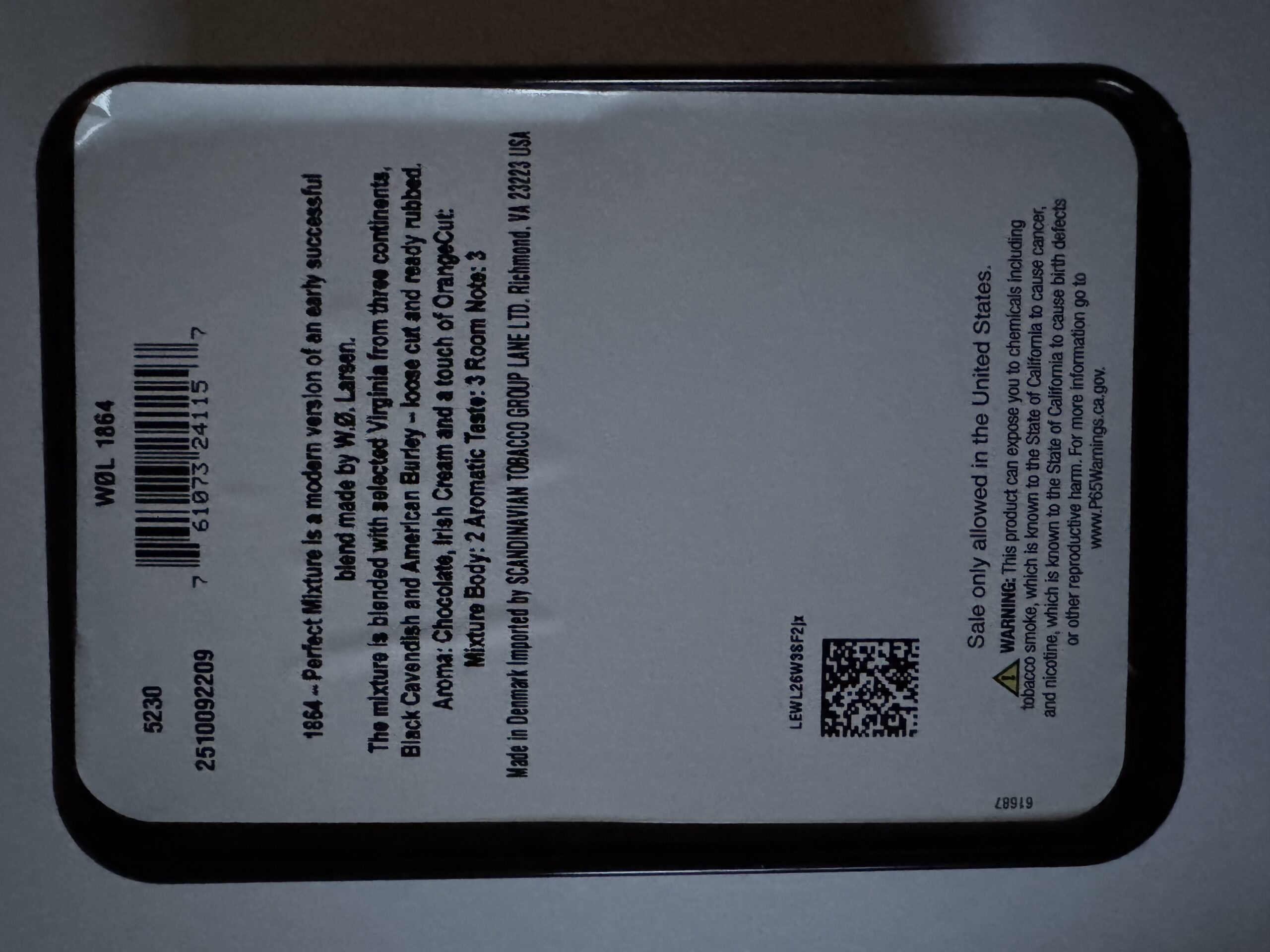 W.O. Larsen 1864 Perfect Mixture Factory sealed, Excellent Condition