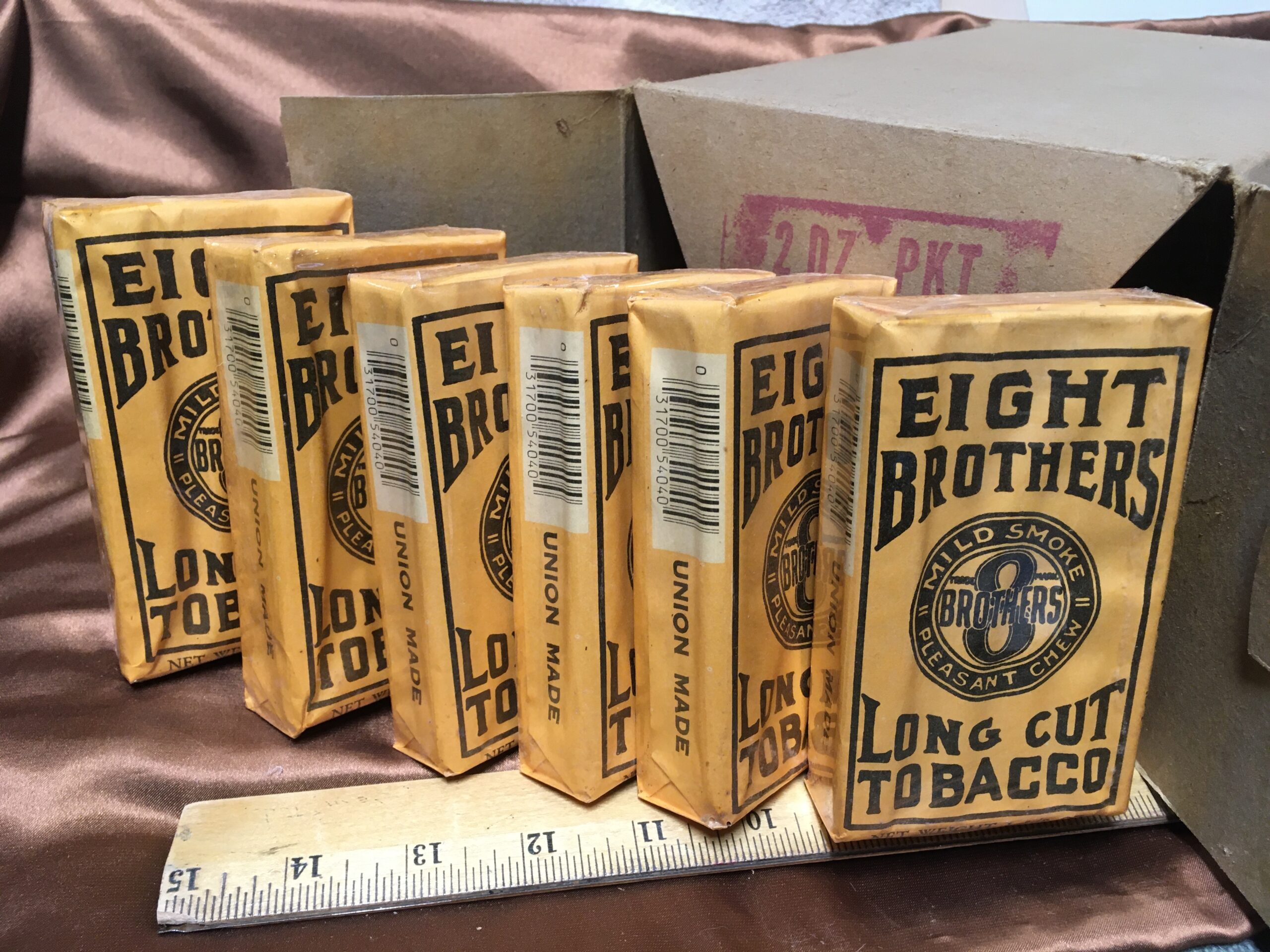EIGHT BROTHERS (1970s-1980s?) Pipe Tobacco - Lot of Six (6) 1-5/8 oz. sealed pouches.