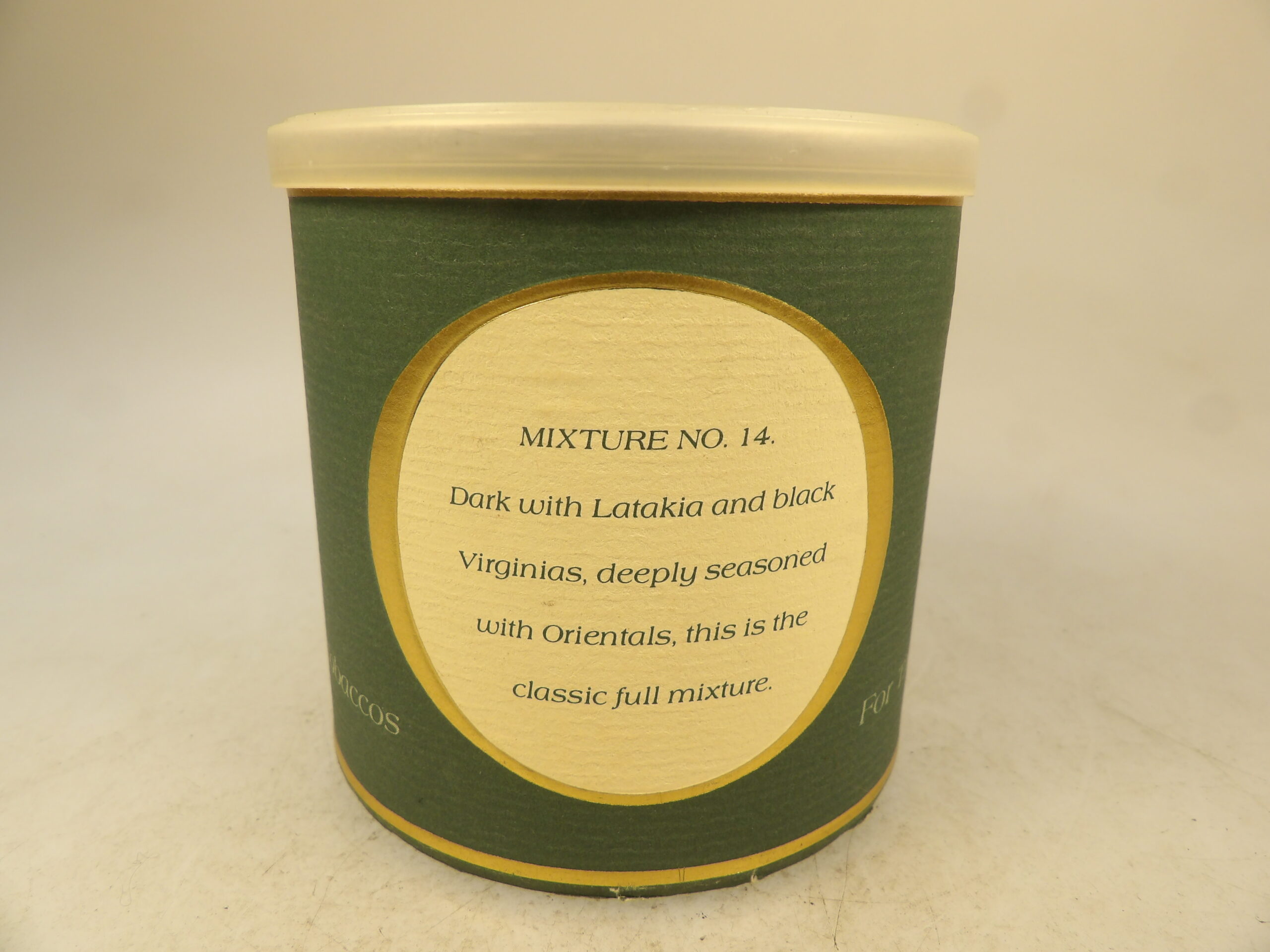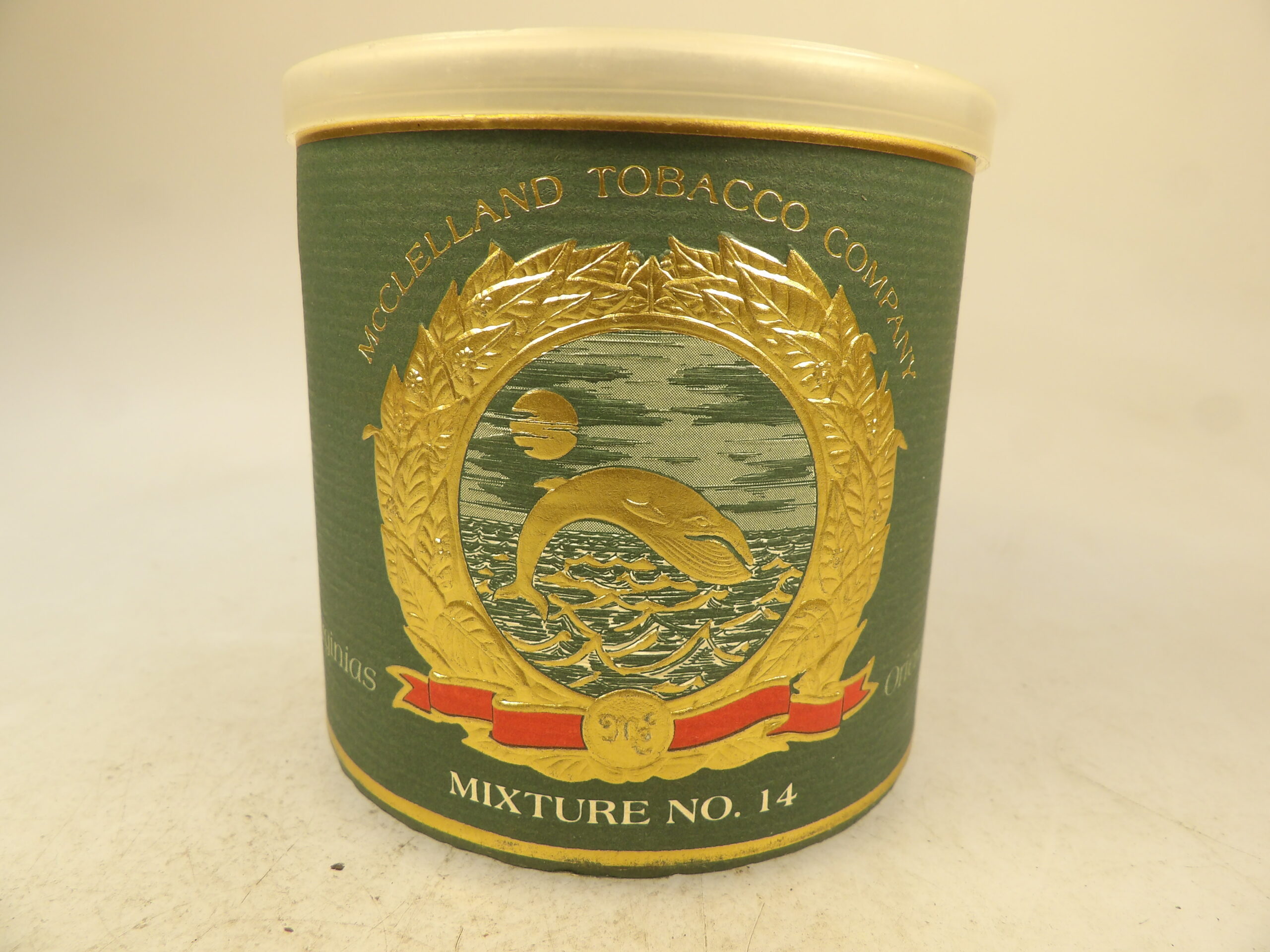 DESCRIPTION: Here is an auction for sale. It is a Vintage Collectible 28 yrs old McClellandâs Mixture No. 14 Sealed 50g Pipe Tobacco Tin 1998. Dark with Latakia and Black Virginias, deeply seasoned with Orientals, this is the classic full Scottish smoke. âMcClelland's no.14 is a delicious, perfectly balanced medium English blend. Everything is in proper proportion. There is enough Latakia to make the blend creamy and smooth, without overpowering the other components. The Orientals are rich and nutty without being bitter. And there are enough Virginias to make it subtly sweet but not sugary. McClelland's Virginias are always magnificent; they taste like honey, cinnamon, and cloves.â This tin is sealed and has never been opened. This tin is no longer produced. Good Luck Bidding and Thanks for Stopping by.