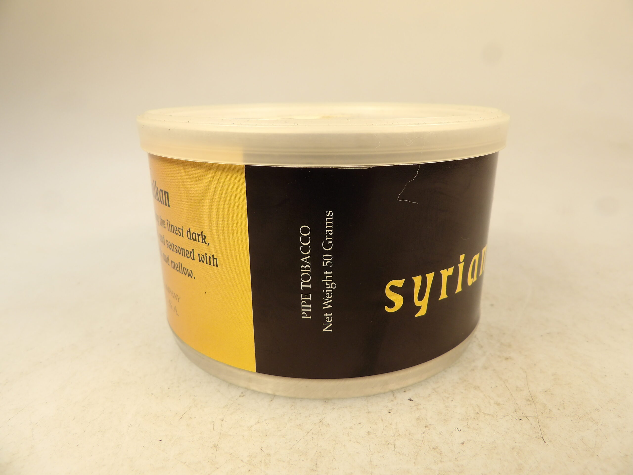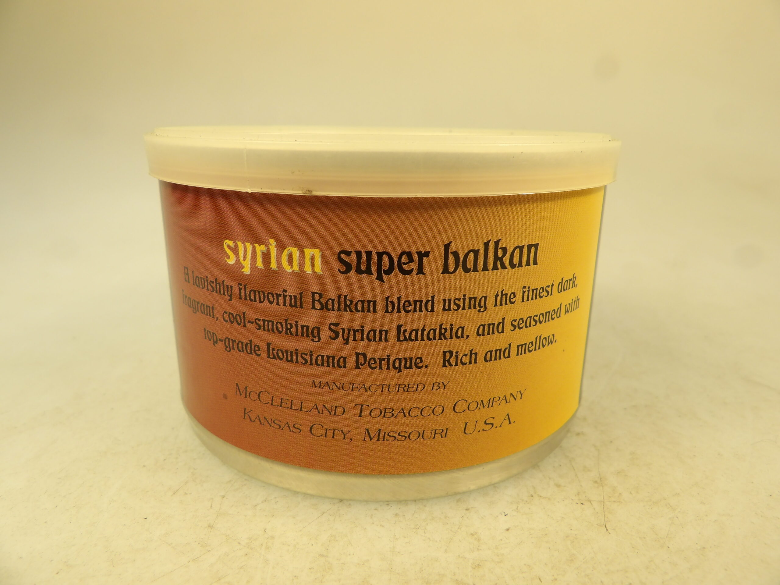 DESCRIPTION: Here is an auction sale. It is a Collectible Tobacco Tin Mc Clelland Syrian Super Balkan 2004 Out of Production. A lavishly flavorful Balkan blend using the finest dark fragrant, cool-smoking Syrian Latakia, and seasoned with top-grade Louisiana Perique. Rich and mellow. Notes: McClelland's Syrian Super Balkan is a smooth blend that is remarkably well harmonized. Superb Virginias and zesty Orientals are melded perfectly with the tang of Perique and fleshed out by the delicate flavor of true Syrian Latakia. The tobaccos work in concert to deliver a mellow, yet rich flavor. Good Luck Bidding and Thanks for Stopping by.