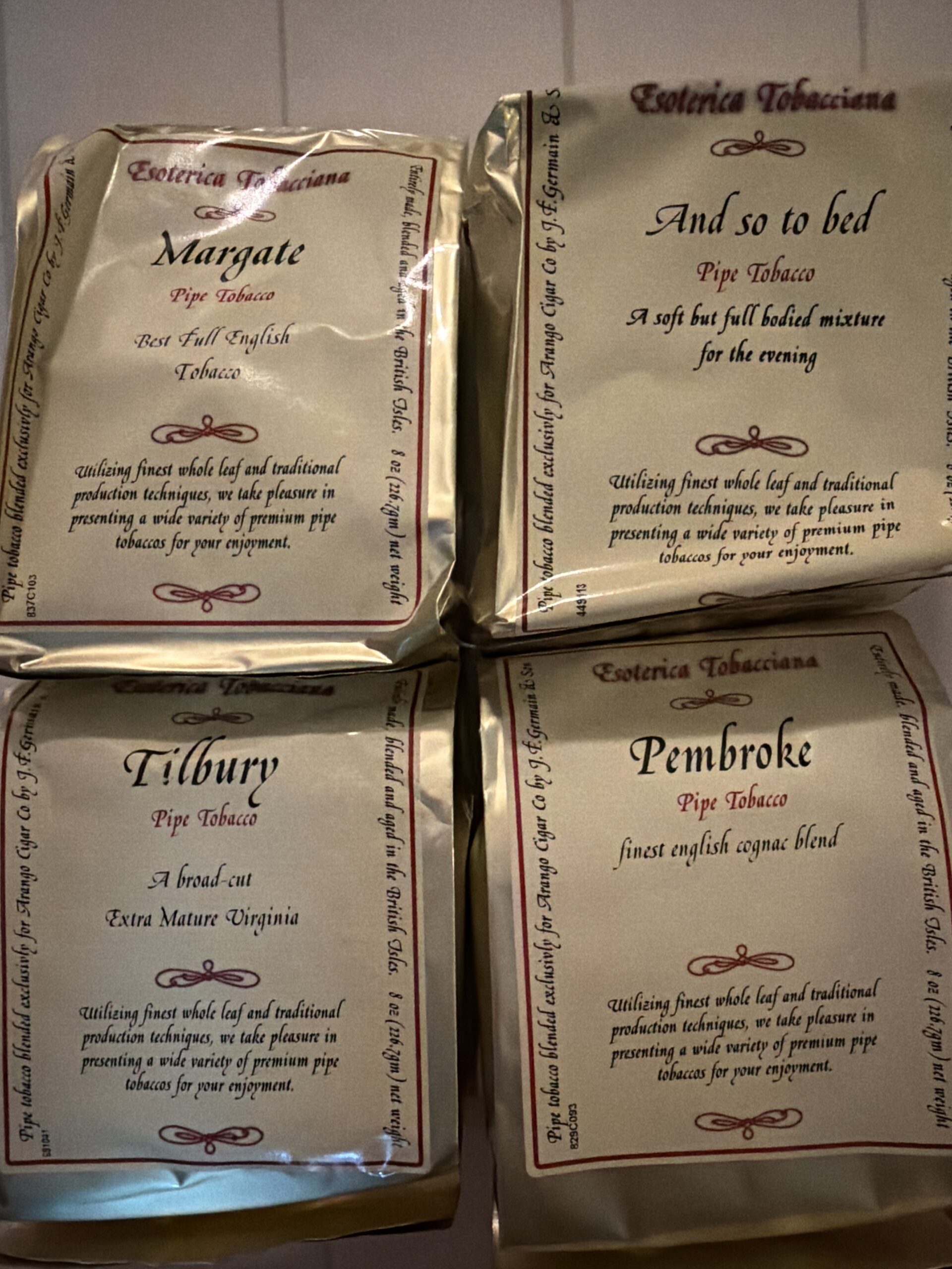 4 bags Esoterica Tobacciana Pembroke Tilbury Margate And so to bed