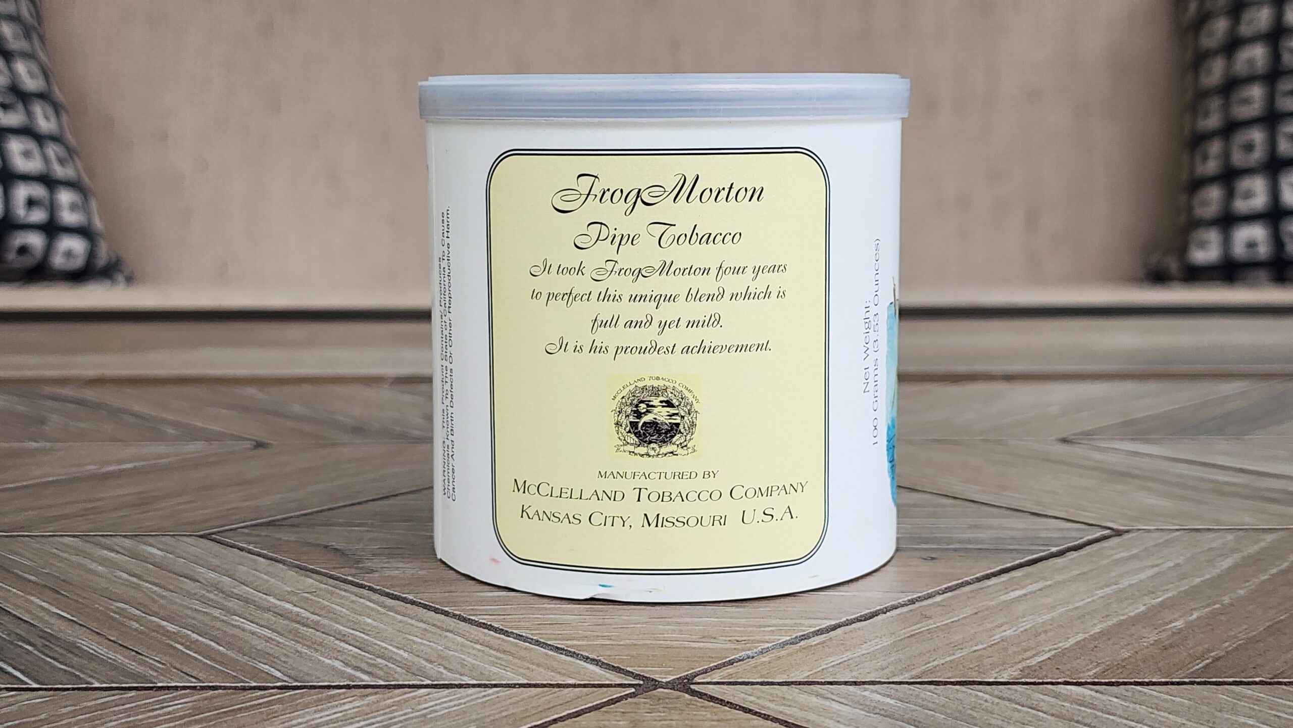 This auction is for one 100g tin of Frog Morton by McClelland Tobacco Company, dated 2018.