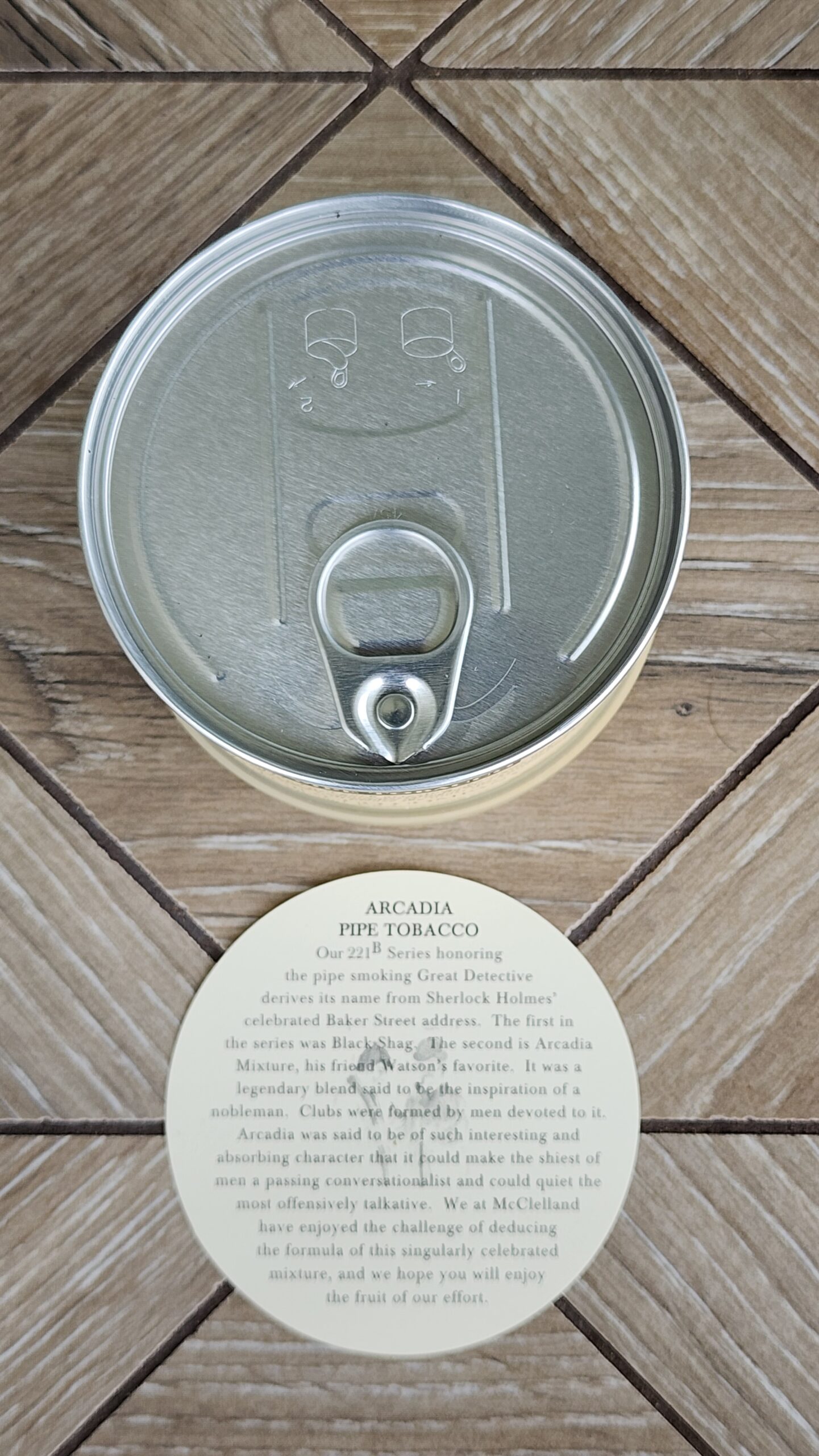 This auction is for one 50g tin of Arcadia by McClelland Tobacco Company, dated 2014.