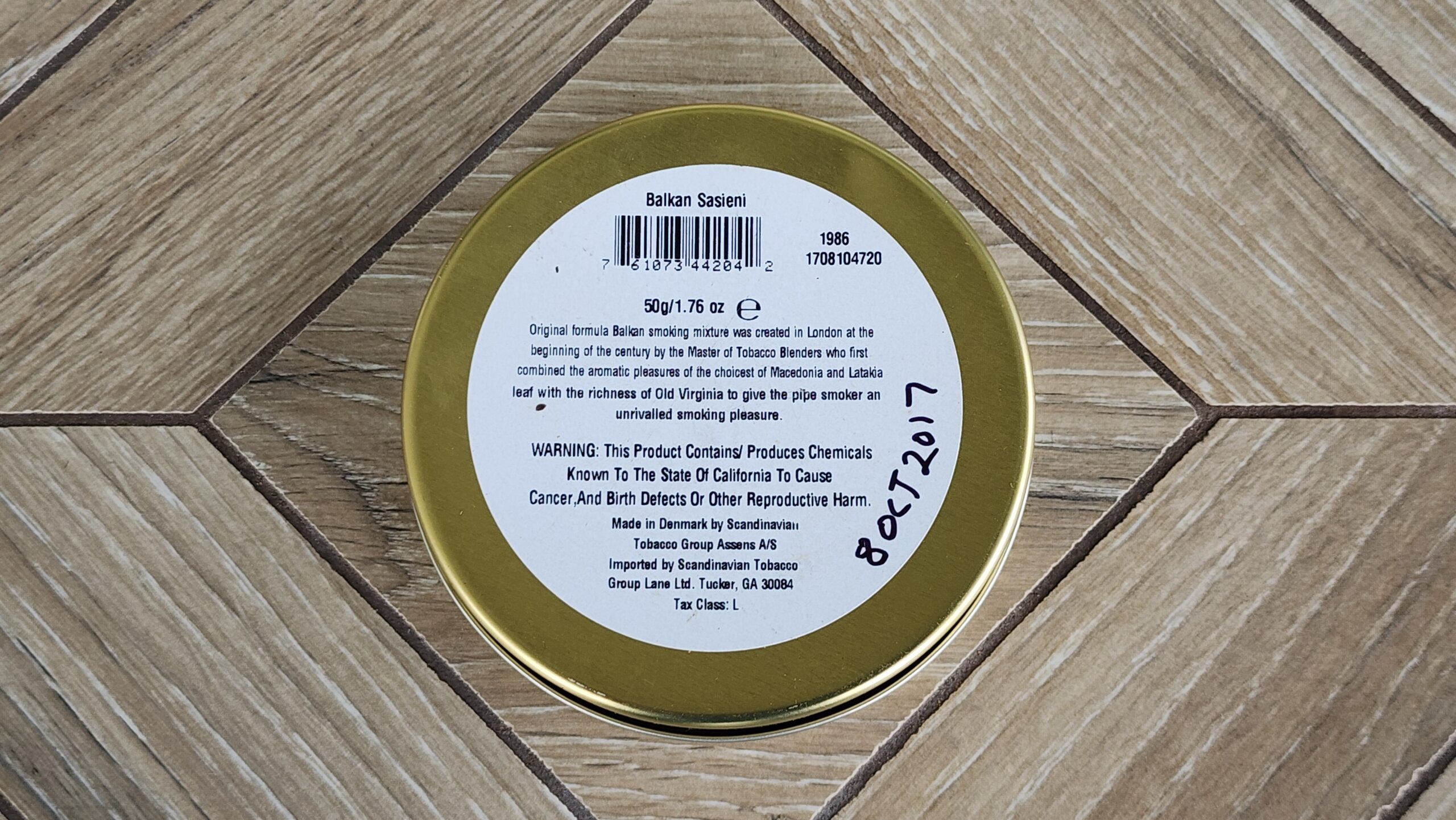 This auction is for one 50g tin of Balkan Sasieni, dated 8 OCT 2017.