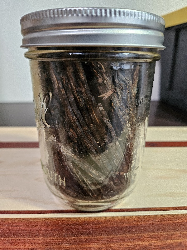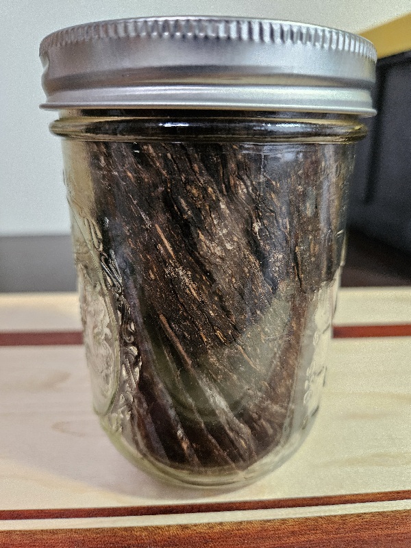 100 grams in a jar. A little on the dry side. Was part of a older pound box. Taste like it has some age. As always, shipped with care.