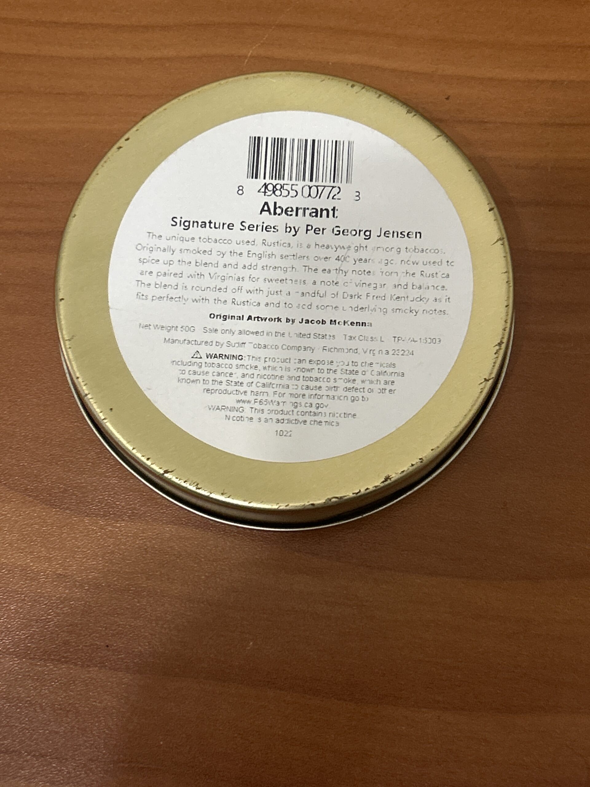 Aberrant by Sutliff, dated 2023, 50 gr sealed tin
