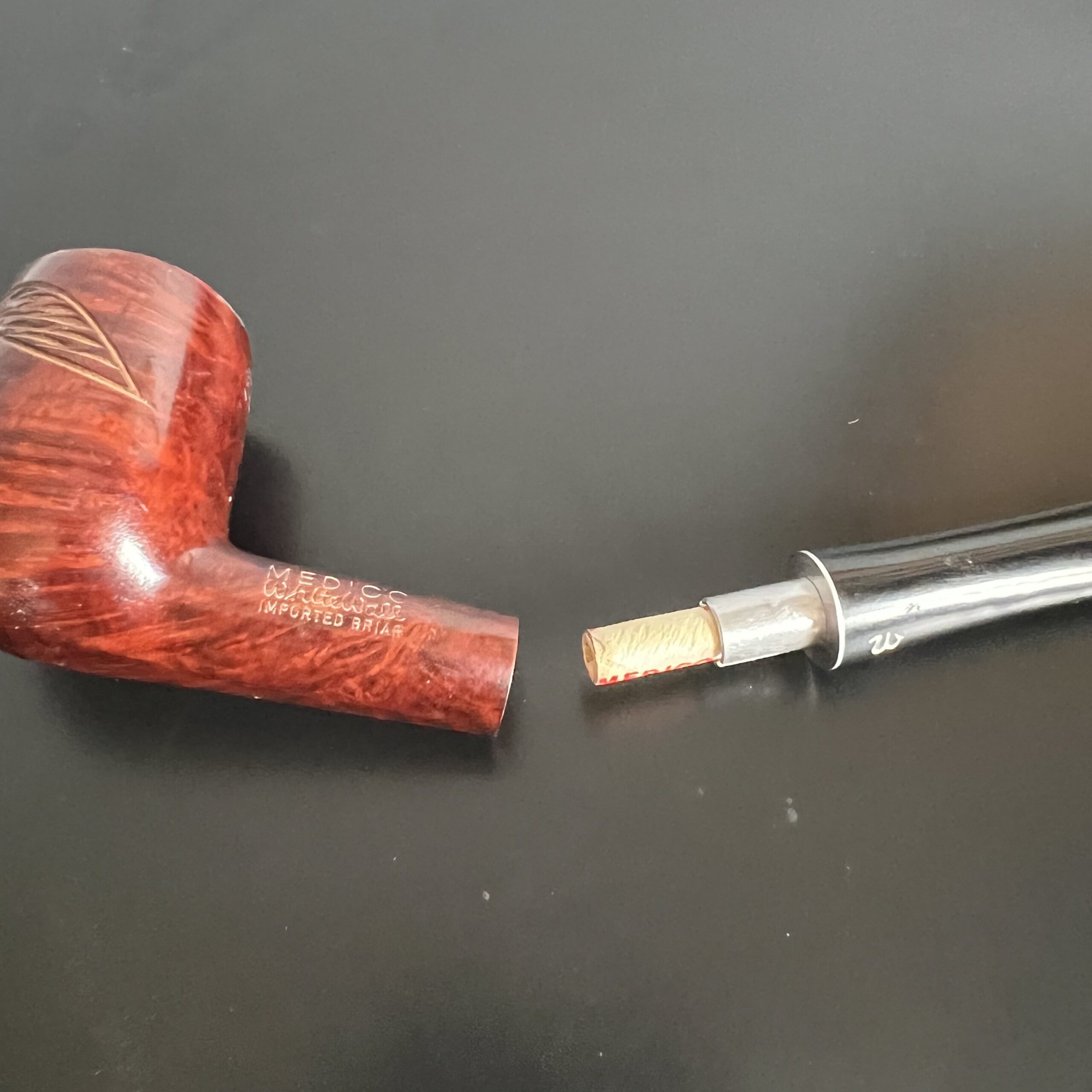 Unsmoked, meerschaum-lined Medico filter pipe in excellent condition!