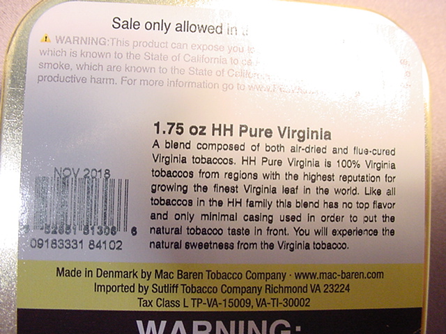 This Pure Virginia tin has a nice 7 years of age on it so it can be enjoyed right when you receive it or you can let it sit a while longer too.