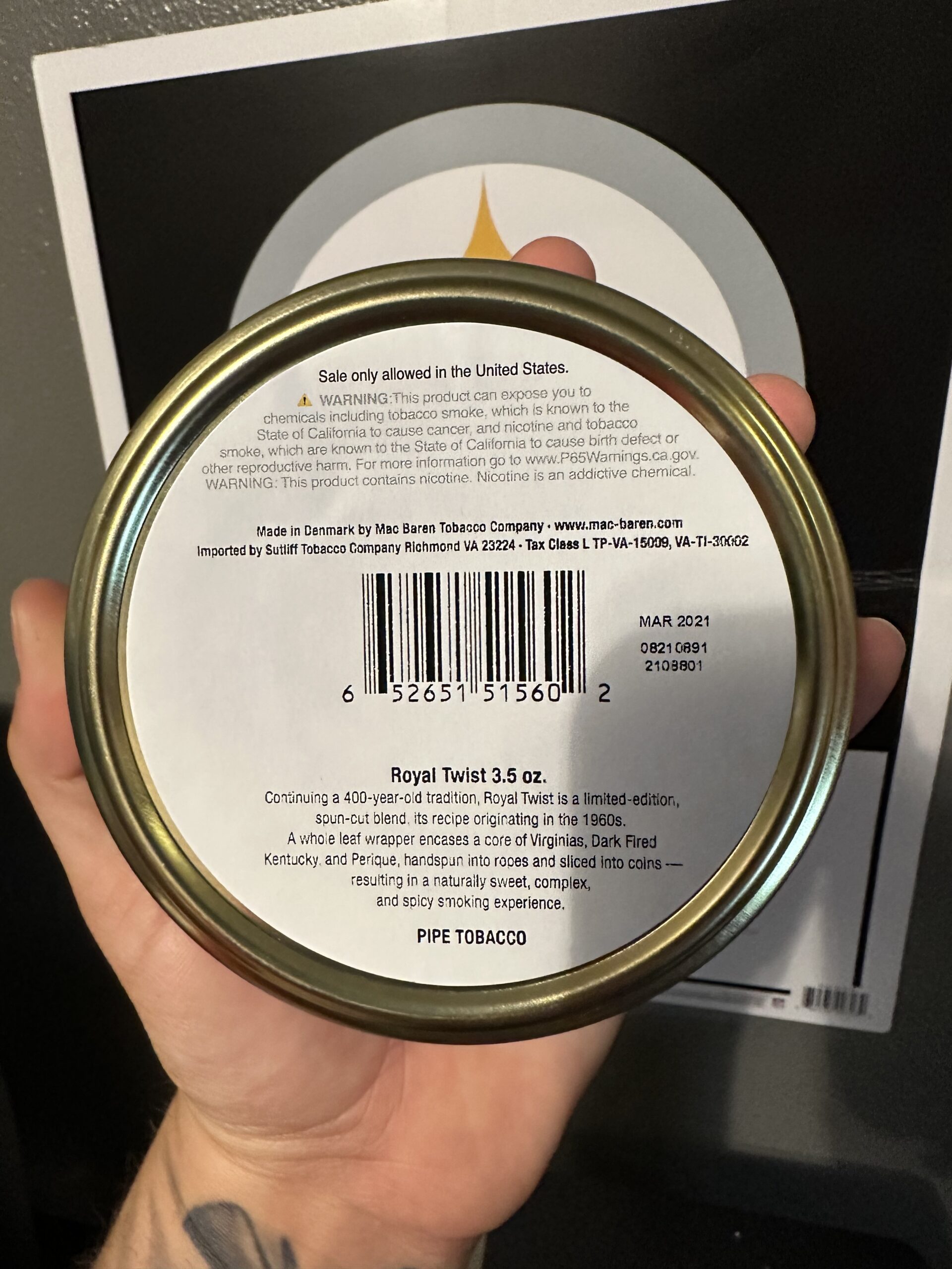 This is a 2021 Mac BAREN royal twist 3.5 oz tin