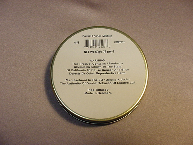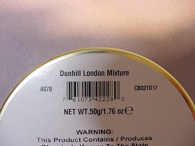 Here is a pristine condition Dunhill tin sealed super tight from 2012 as the Date code indicates on the back of this tin, where you see the "2" that is the year for 2012.