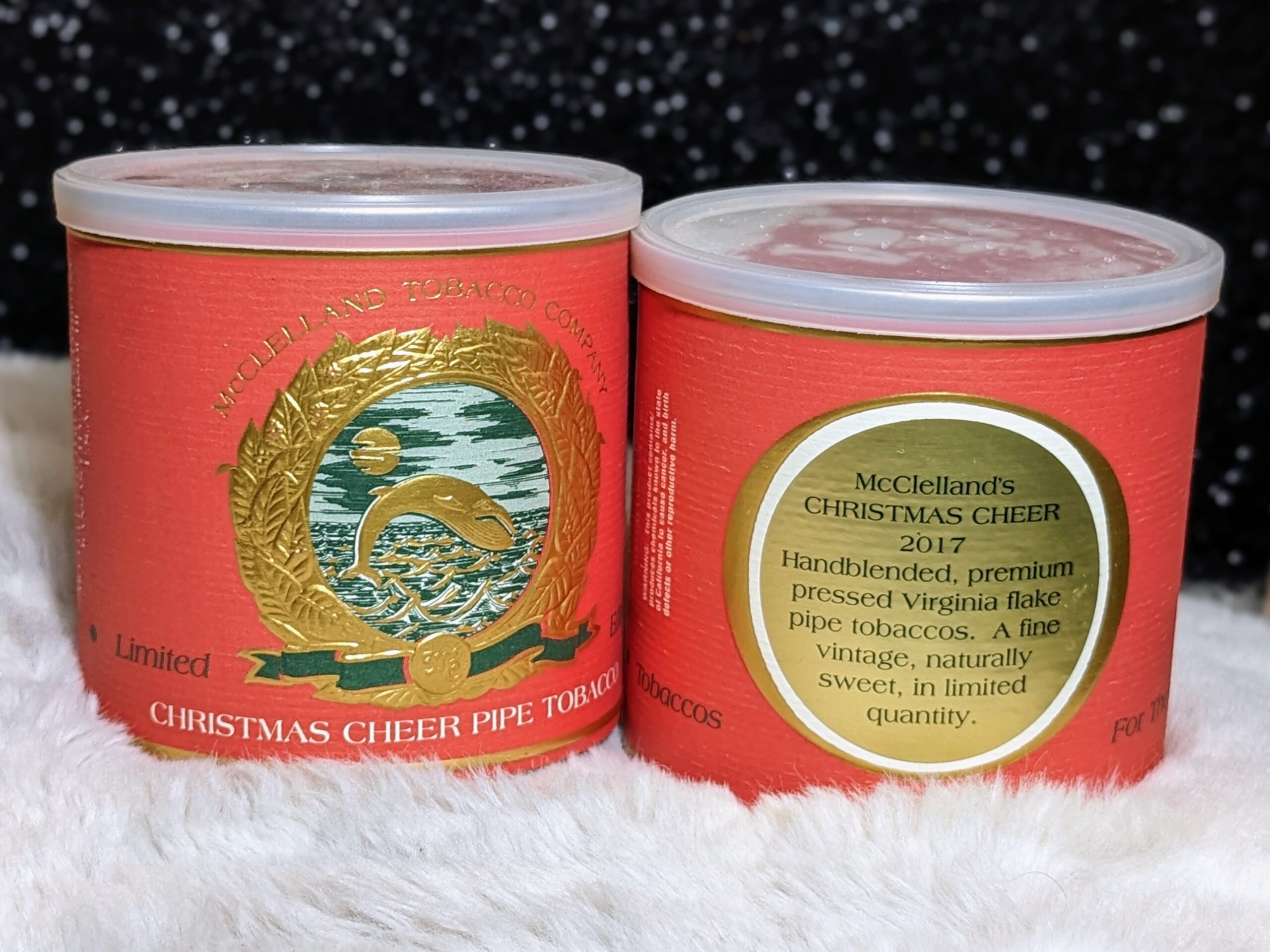 With Christmas Cheer pipe tobacco, we treat our discriminating customers to the singular pleasure of a tasting of the very finest in tobaccos of a particular vintage, not worrying about maintaining the flavor and appearance of this product into future years but actually striving instead to present the unique character of a single crop and area.