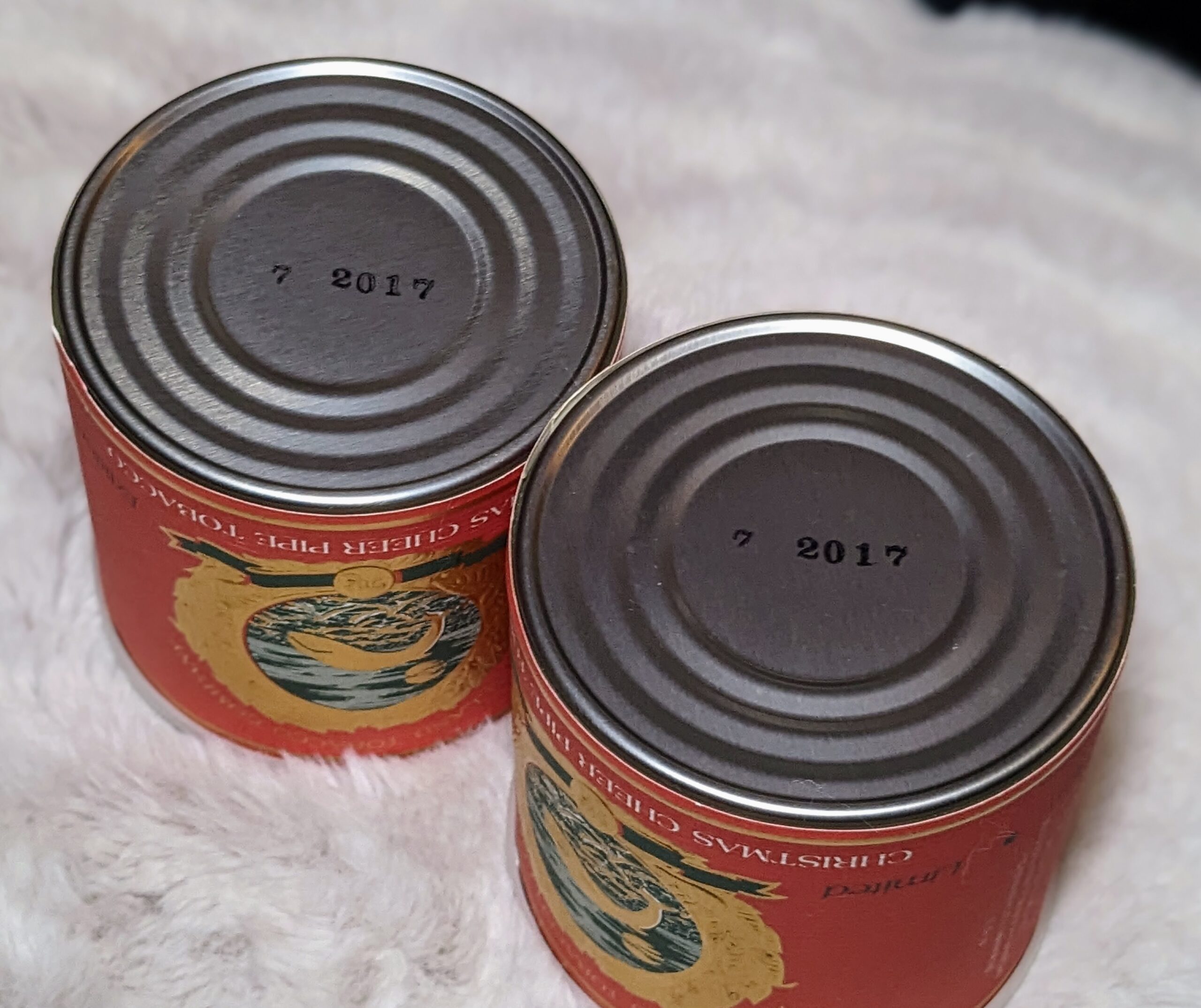 From tin insert: We are proud to offer our 2017 Christmas Cheer pipe tobacco, an exceptionally fine vintage tobacco, hand blended and aged in pressed cakes to develop natural mellowness. This 2017 blend is made with a special selection of rich, deep red, flue-cured Virginia from an excellent 2013 crop grown near New Hope, N.C. Superb leaf picked at peak ripeness, it is naturally sweet, rich in oils. It should age with distinction. Each buying season, we look for tobaccos of exceptional quality and distinctive character. In various combinations, their flavors, aromas, textures, contribute to the overall excellence of all our products.