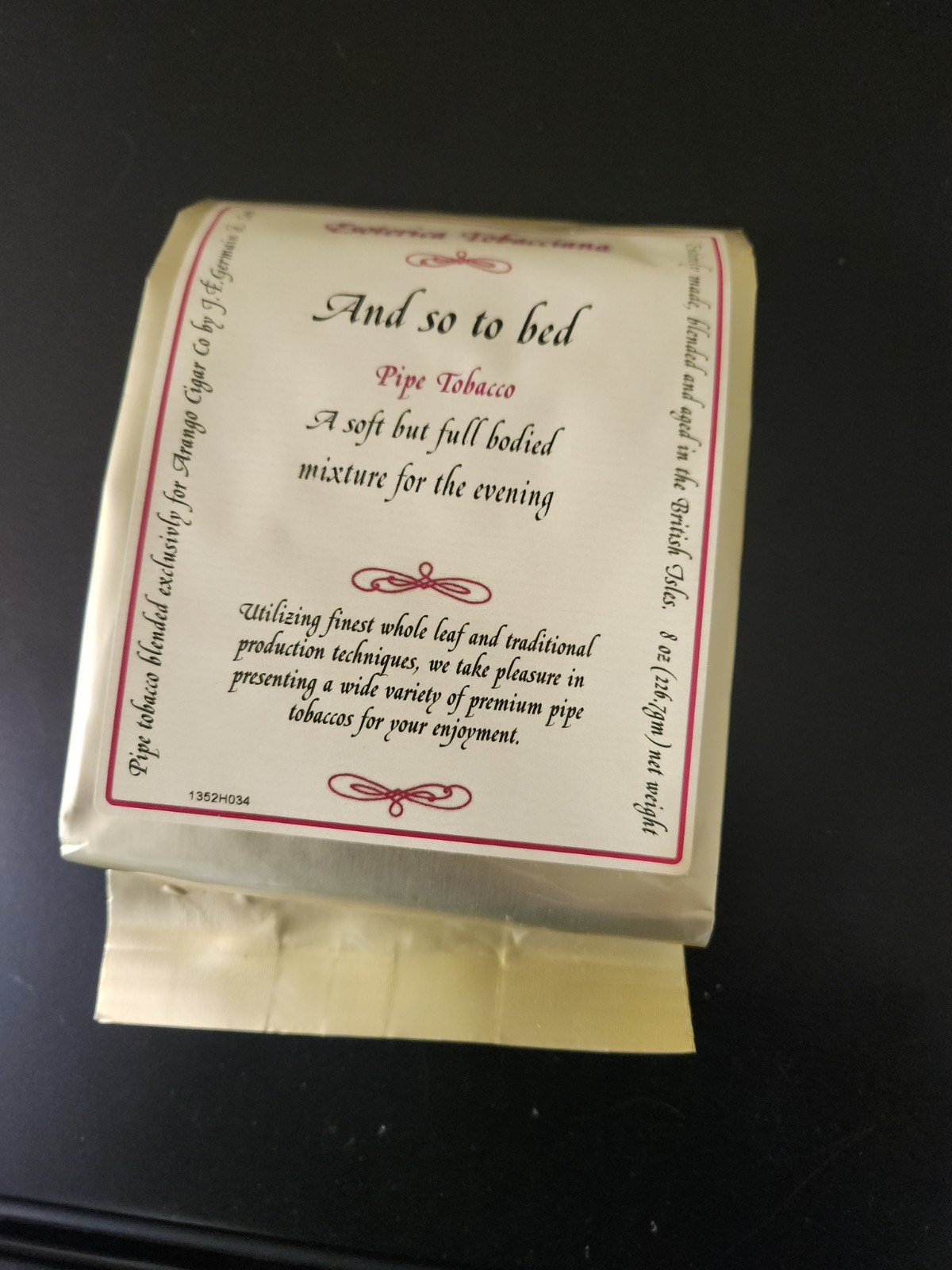Notes: This mixture is absolutely ideal for the evening, ergo.We borrowed the name from the diaries of Samuel Pepys, Esquire. Most excellent grade Virginia and Maryland type tobaccos are carefully aged and blended with Greek "Oriental" leaf and top-grade Cyprian Latakia. The blend is then specially processed and additionally matured to produce a mellow, full-strength smoke with rich flavor and unique aroma.