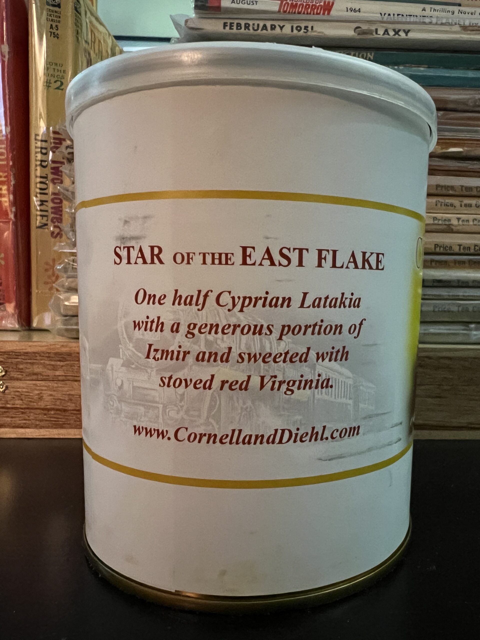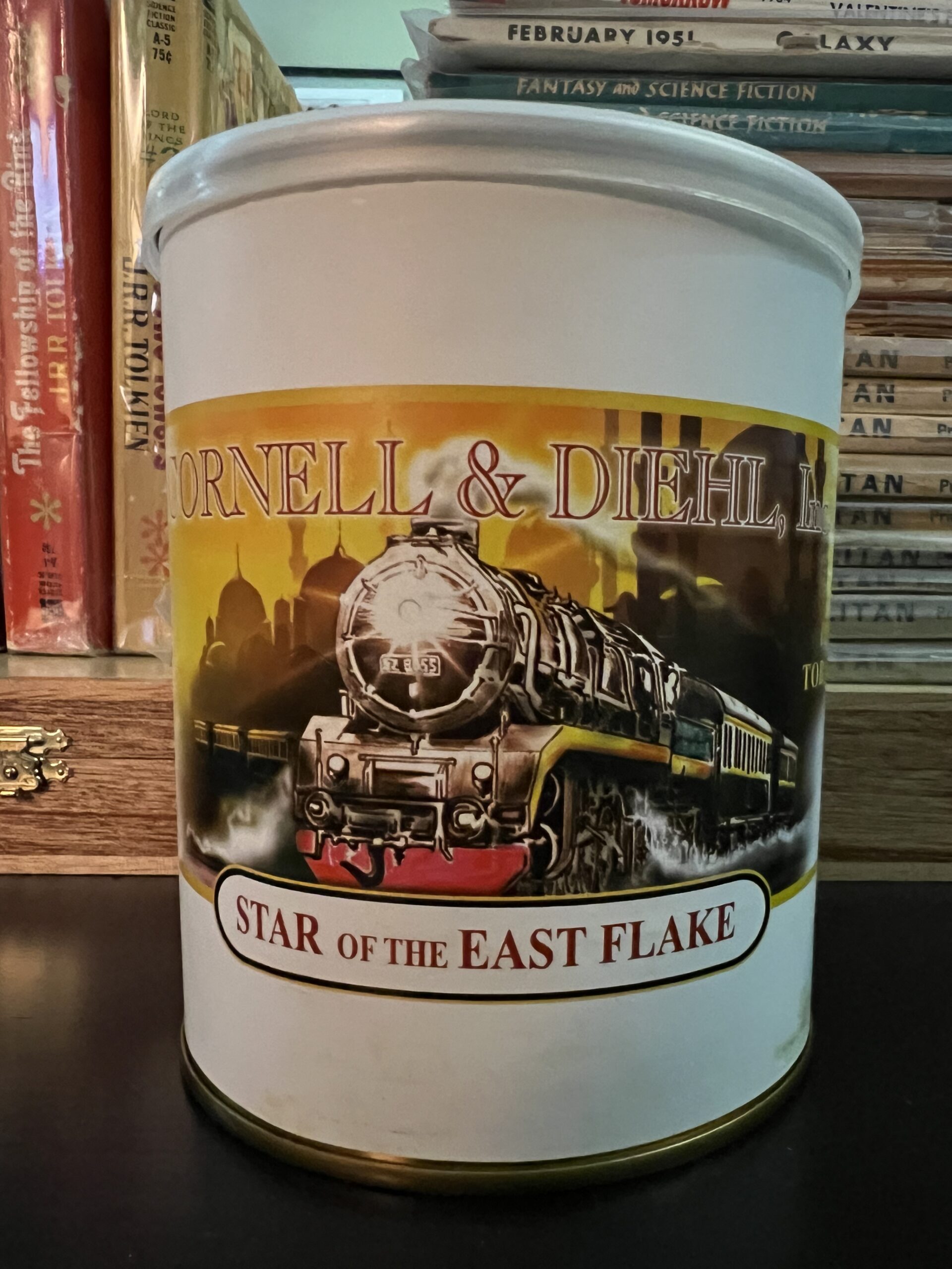 A beautiful big tin of Cornell & Diehl Star of the East Flake aging since 2016. Note: New 2oz tins are relatively easy to find at retail but an aged tall boy is a thing of beauty. Cheers!
