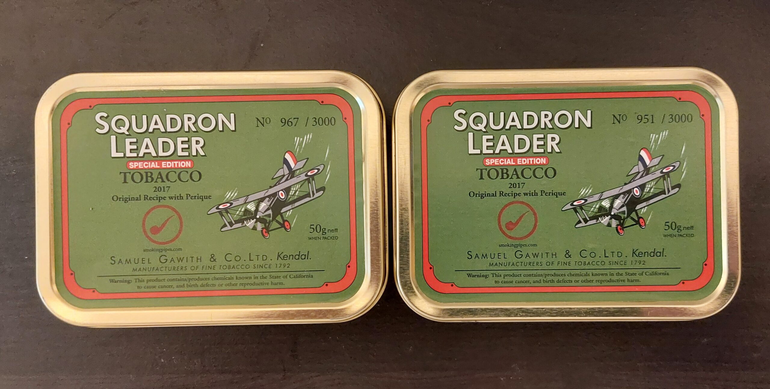 Here are tins #951 and #967 of Samuel Gawith's Special Edition Squadron Leader with Perique, from 2017. An exclusive release from C&D's storefront, smokingpipes.com