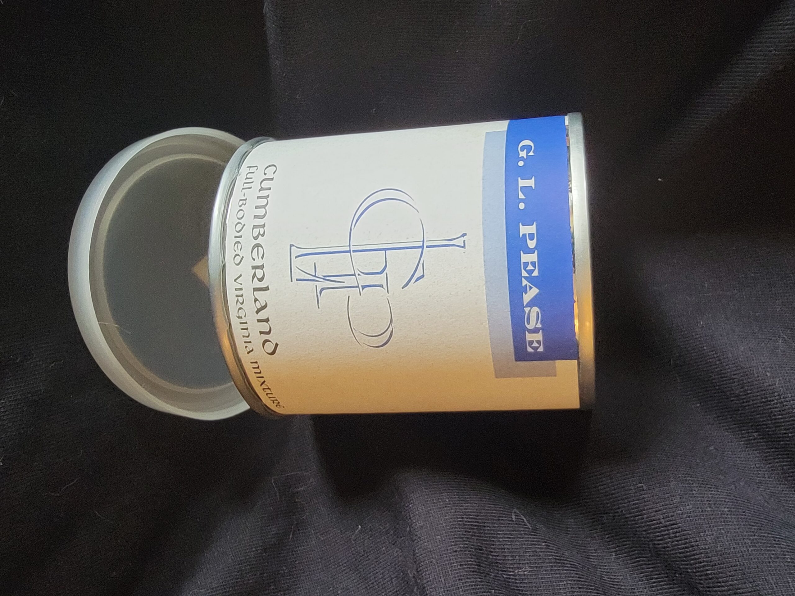 20 plus year old tin of GL PEASE CUMBERLAND contains the original 20 year aged Mahogany Kentucky tobacco now with over 40 years of age. The Kentucky used in this tobacco was lost due to a fire.