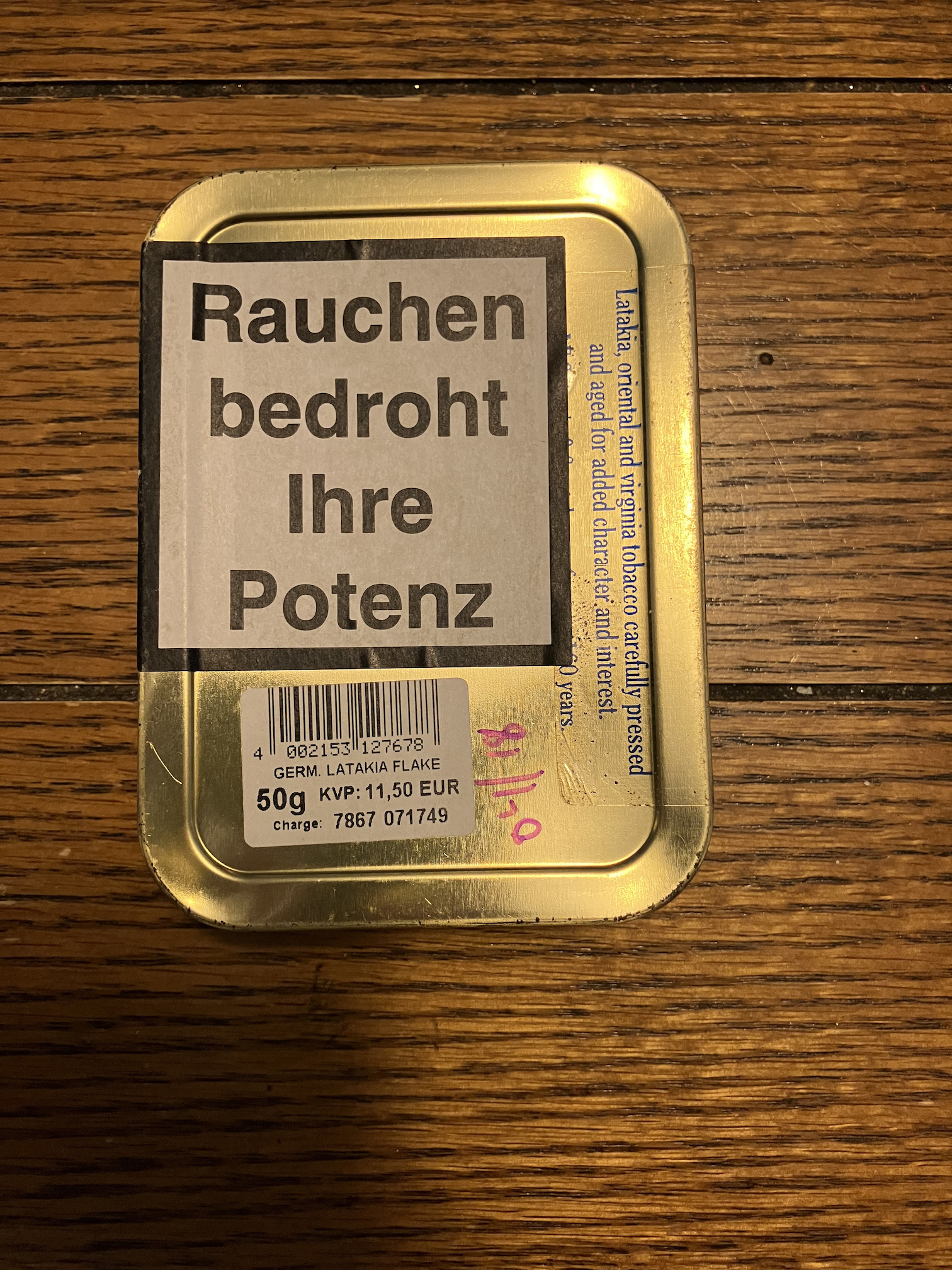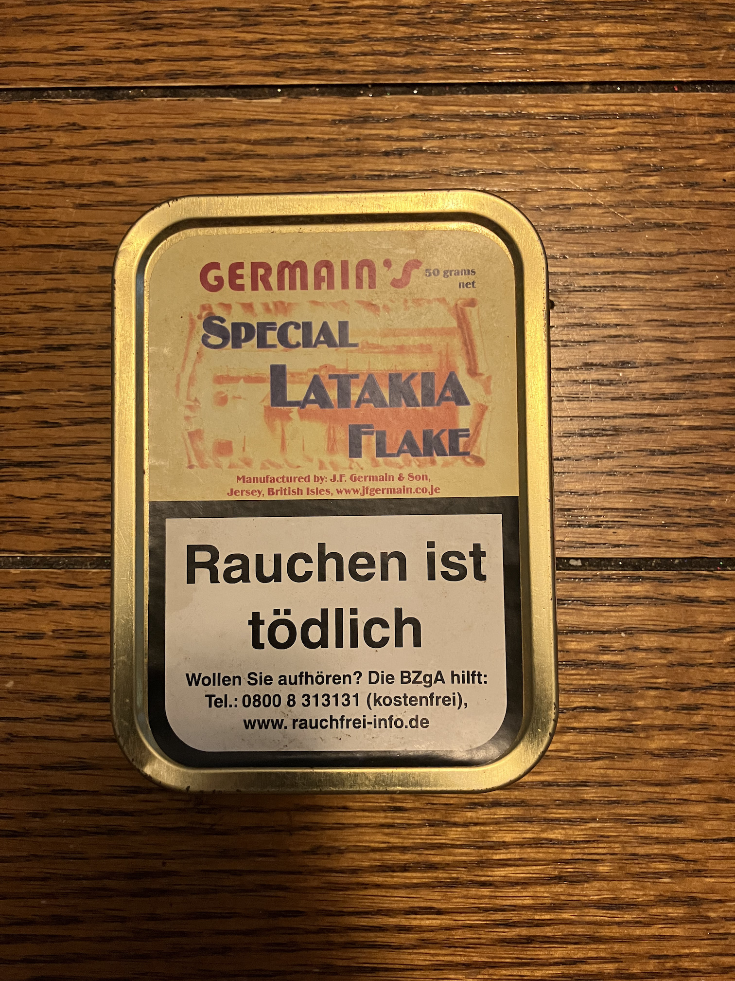 Cellared 50g tin of JF Germain Special Latakia Flake.