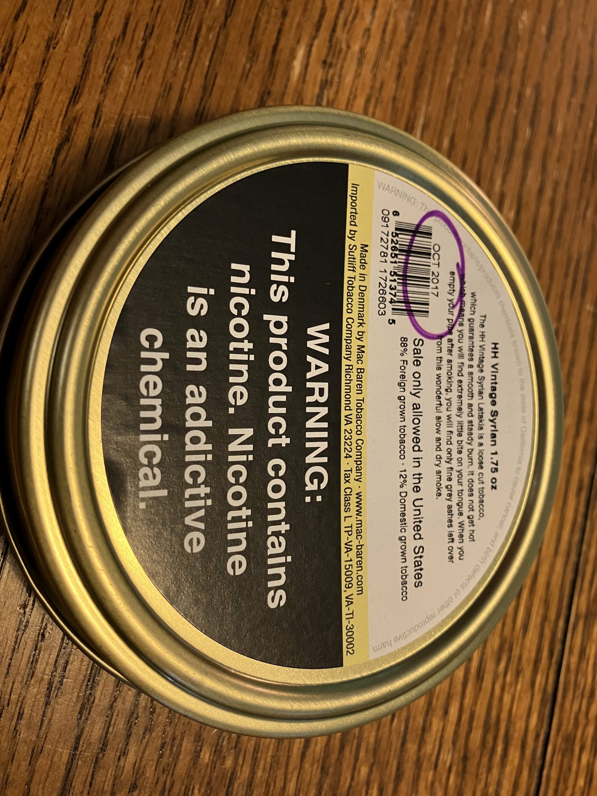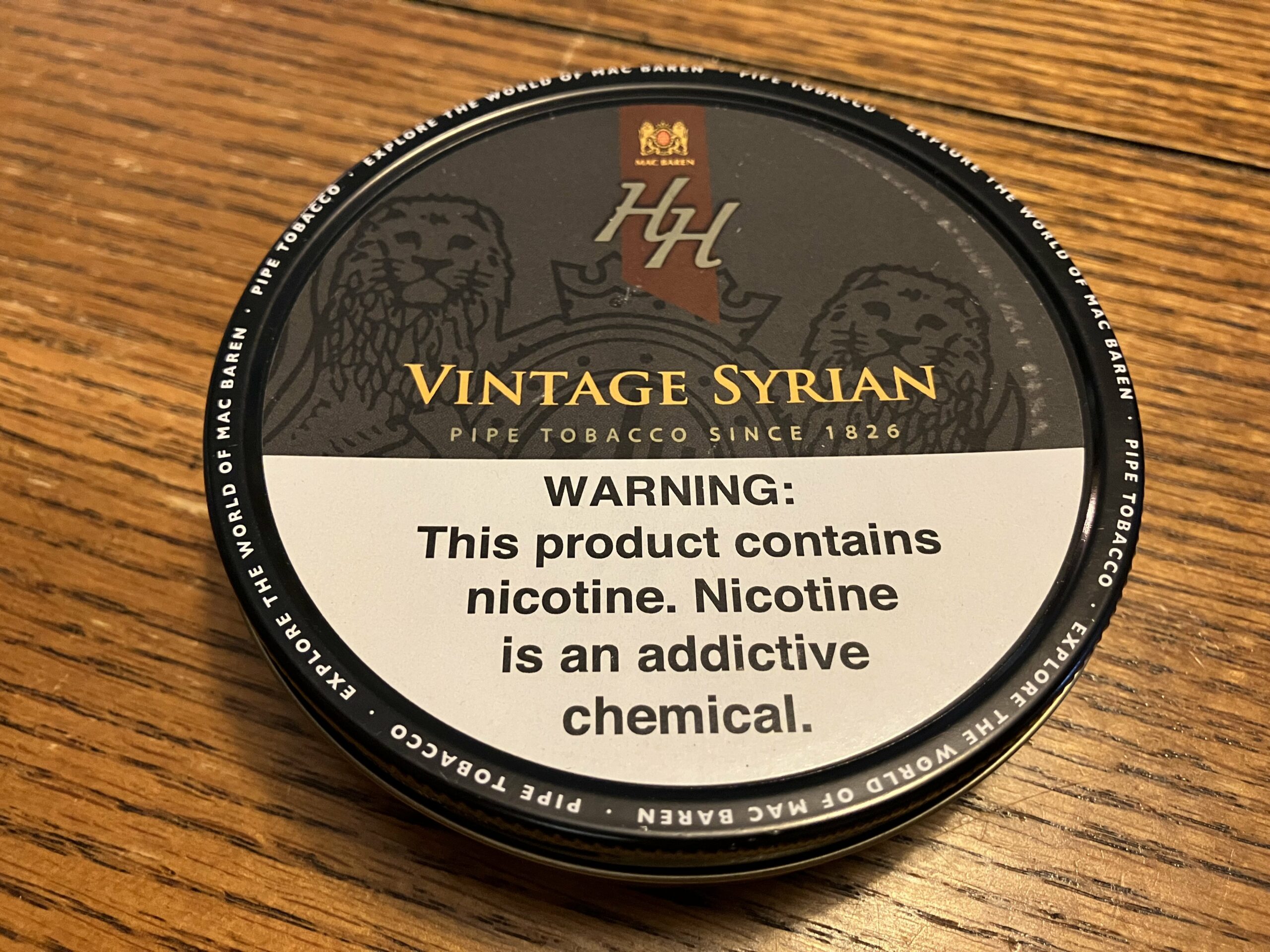 Cellared 50g tin of Mac Baren HH Vintage Syrian from 2017.