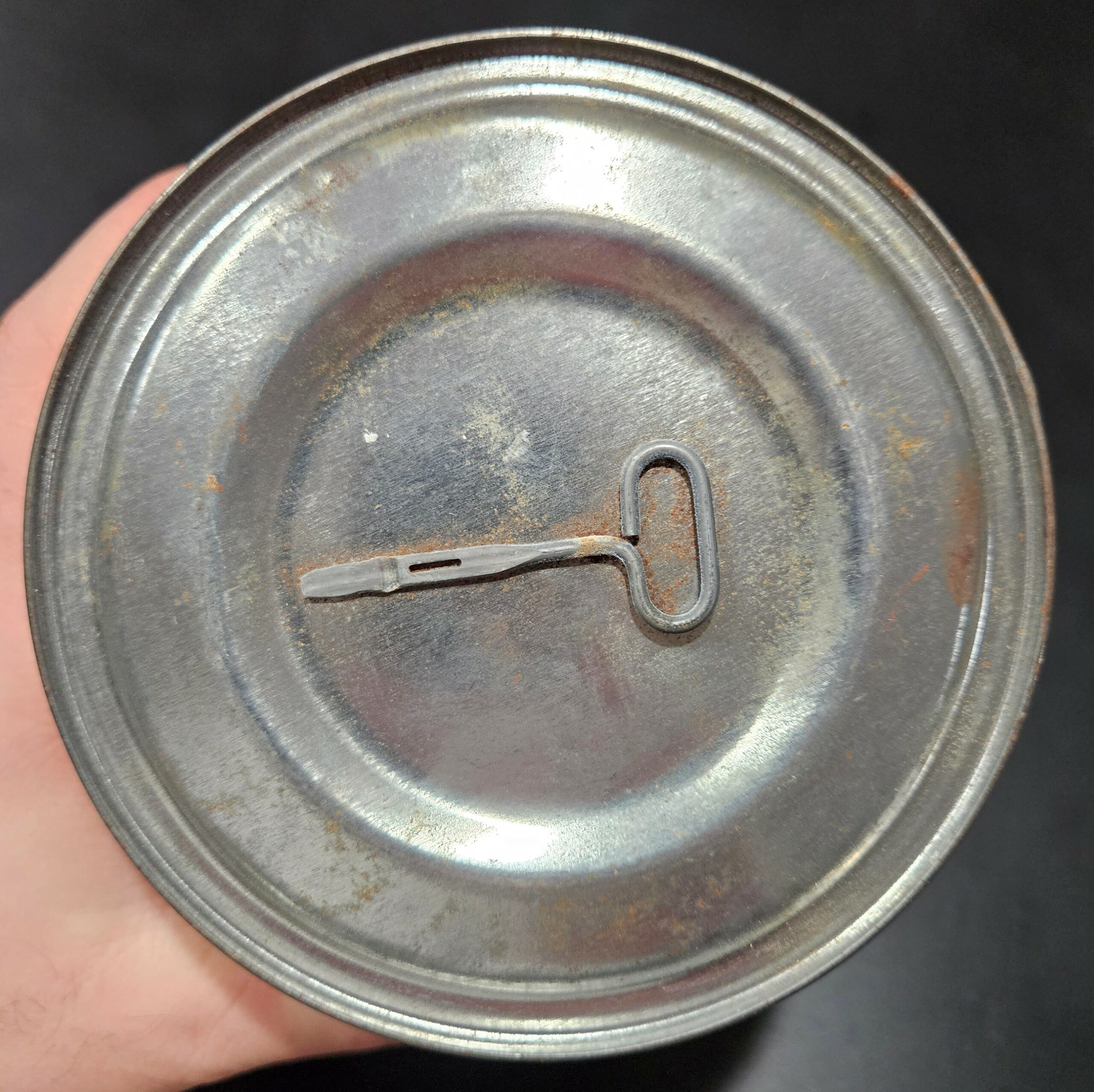 Sealed tin in good condition. A little surface rust, but nothing that affects the seal.