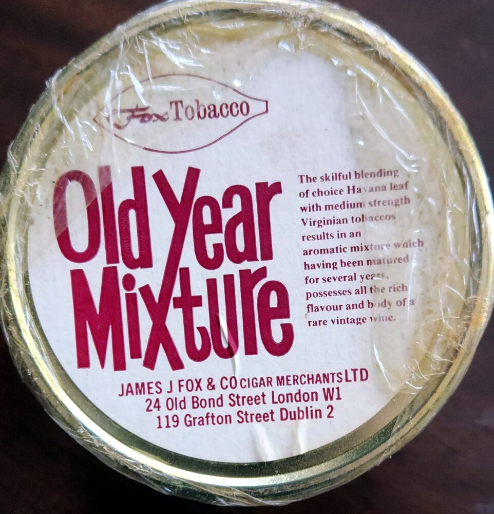 THIS PRECIOUS TOBACCO BLEND WAS AGED FOR YEARS BY FOX BEFORE IT WAS EVER PACKED, AND THEN CELLARED FOR A TOTAL OF APPROXIMATELY 47 ADDITIONAL YEARS!
