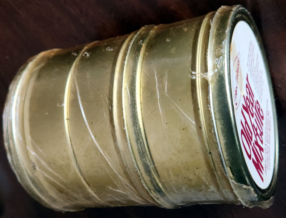 I acquired this sleeve of three 100g tins in 1986, after it had already been cellared for several years.