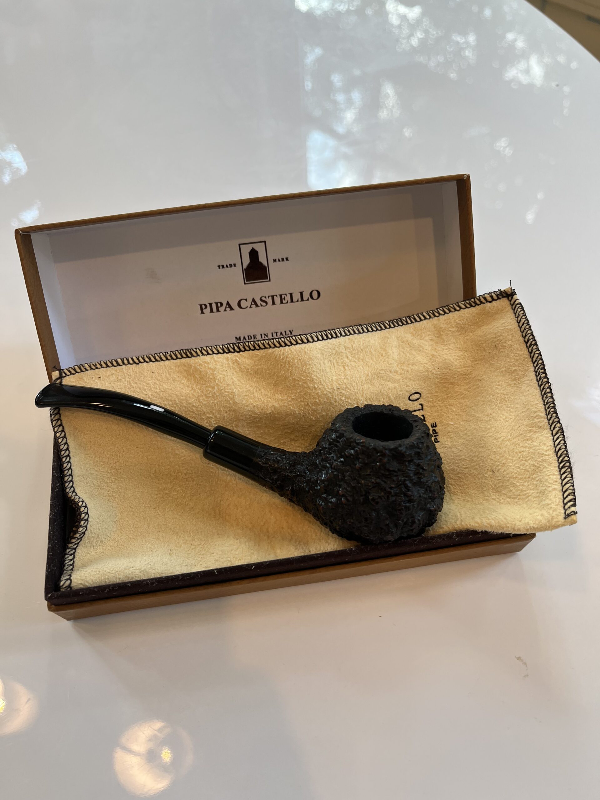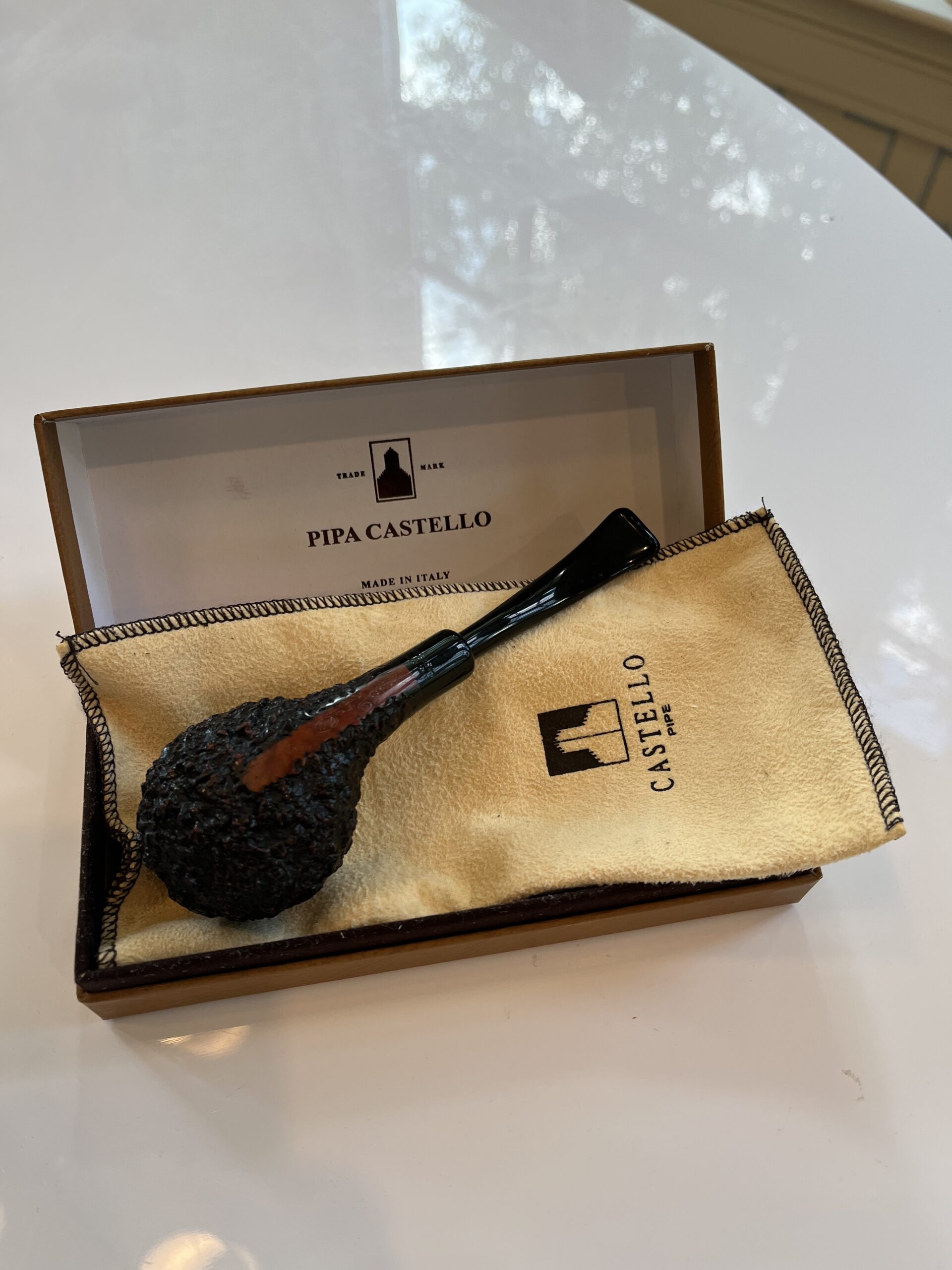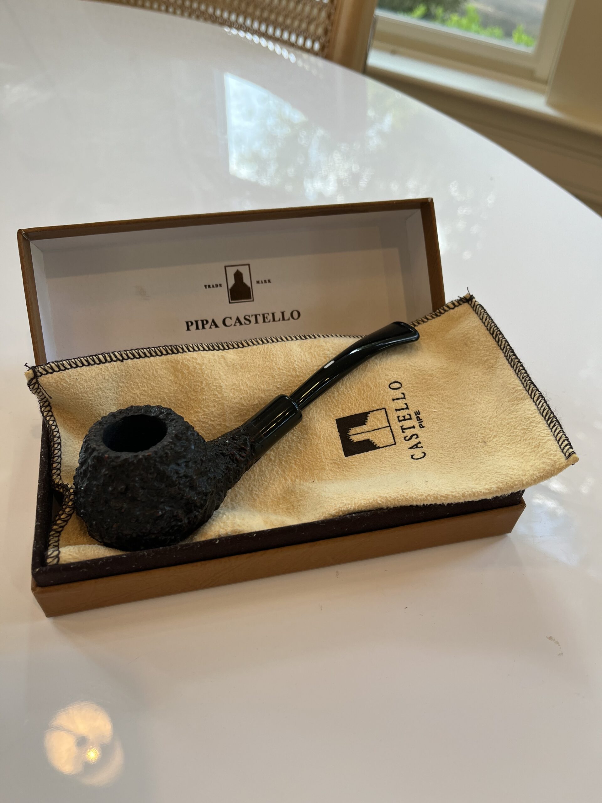 Beautiful army mount KK bent brandy Castello in sea rock rustication, excellent condition and well cared for. One owner, I purchased this brand new for Christmas six months ago from my local brick and mortar. It’s been smoked carefully and gently and cleaned each time. Includes original fleece sleeve and box.