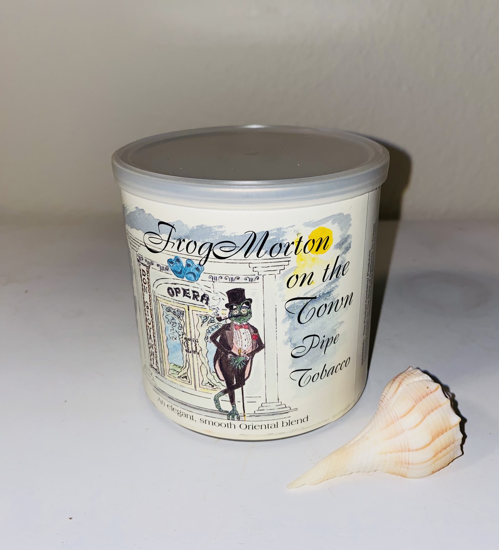 A rather mellow smoke, McClelland's Frog Morton on the Town draws deep rich flavor from its base of golden and red Virginias and a pleasant smoky, earthy undertone from the latakia. A subtle flavoring from Basma (a Greek Oriental tobacco) gives the blend a unique, almost vanilla like flavor.