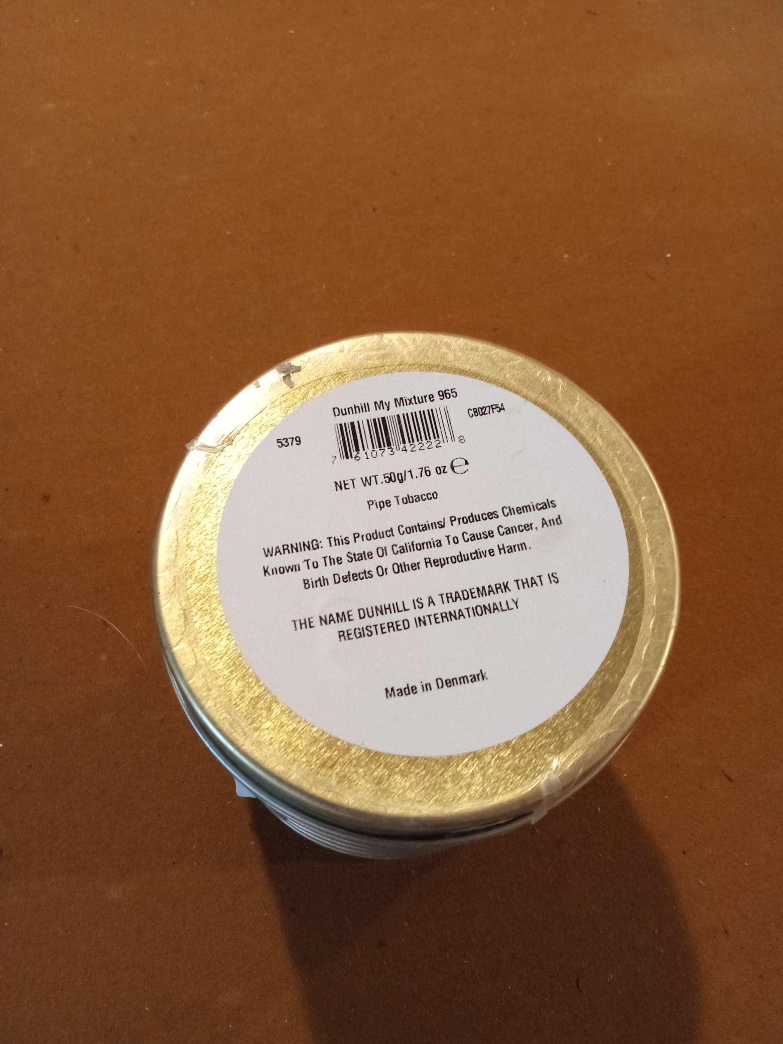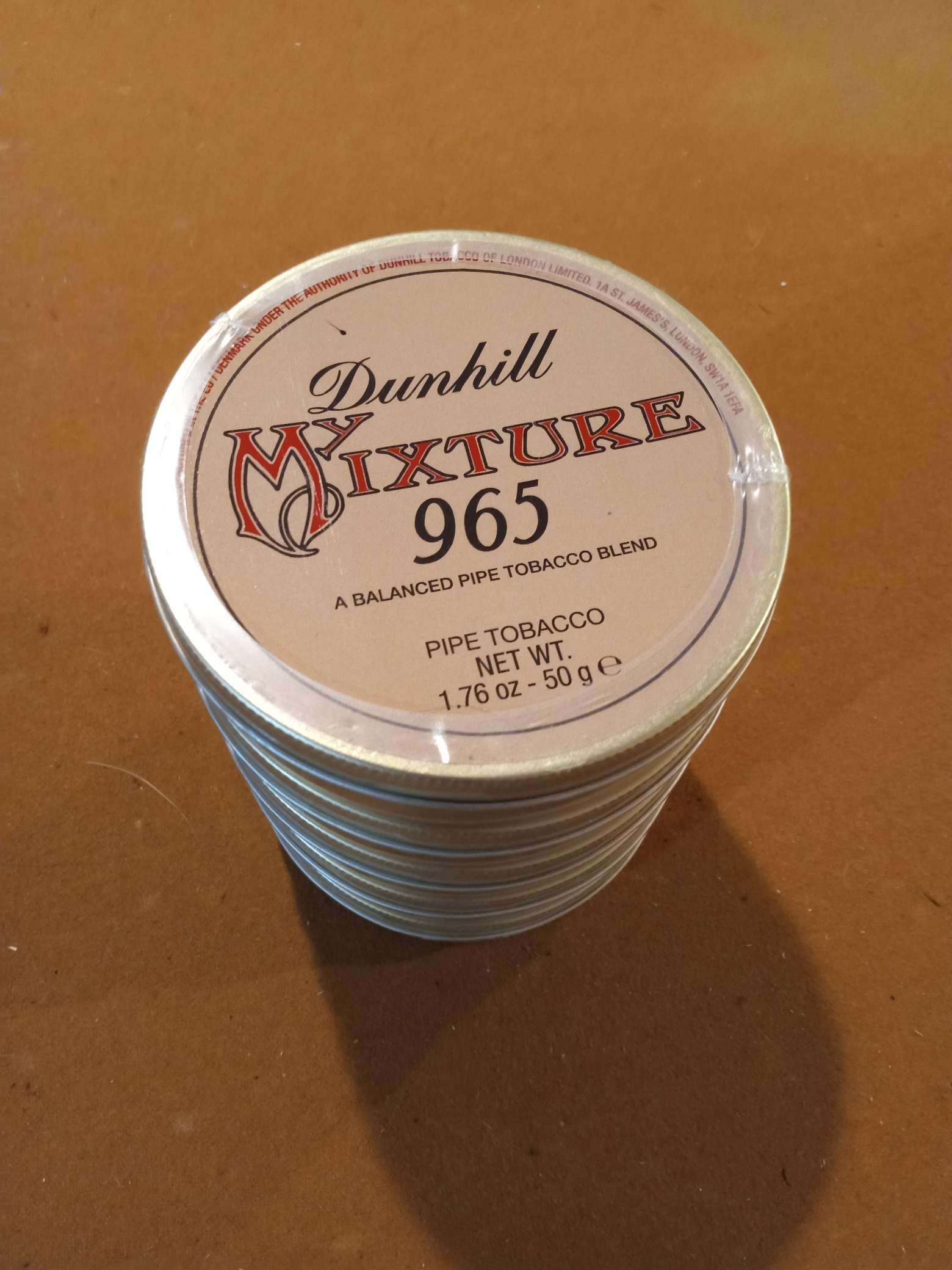 This sleeve of five 50g tins of Dunhill MyMixture 965 (from 2017) have been stored in a cool and dry environment.
