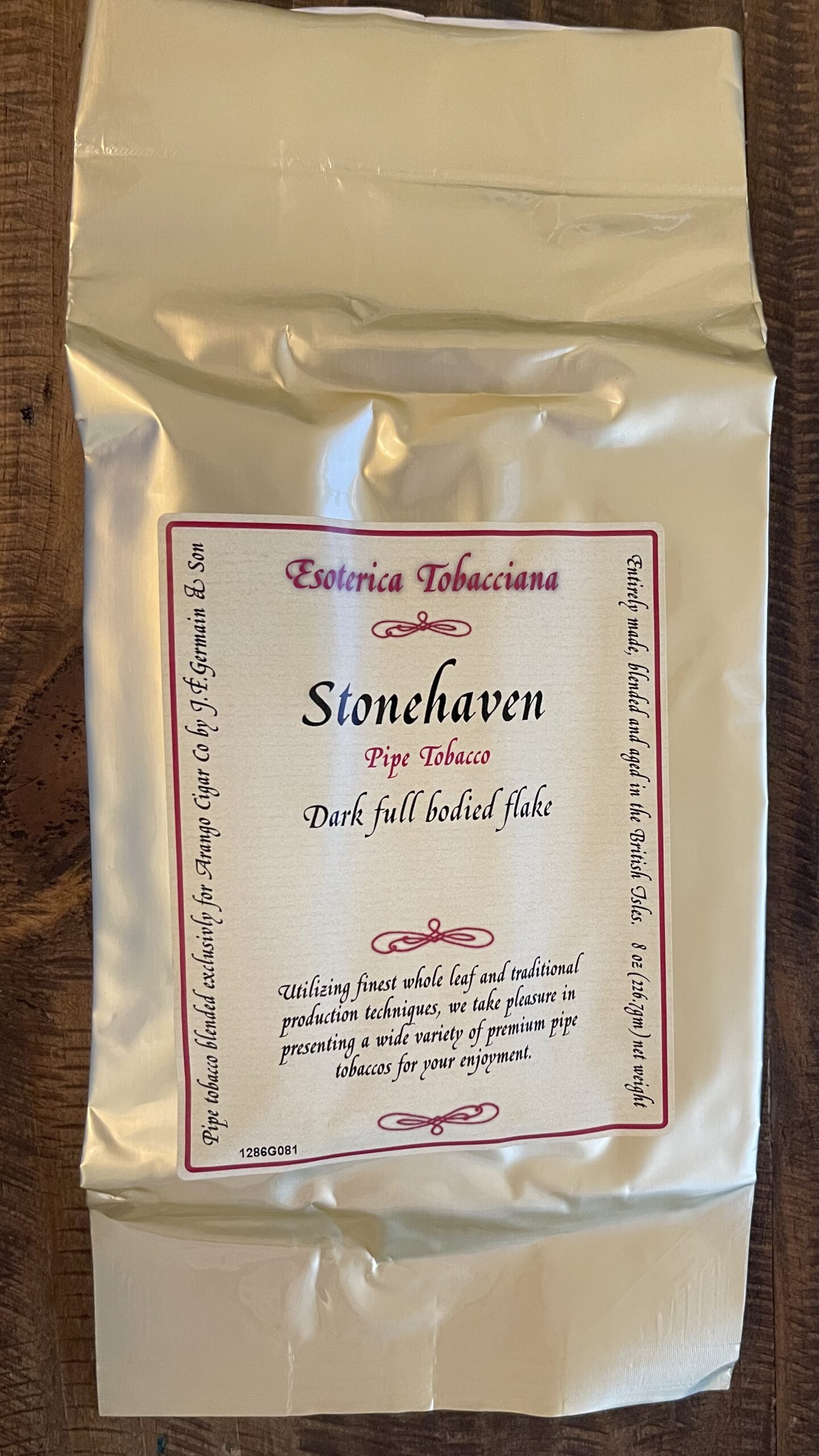 This is a factory sealed 8oz bag of 2021 Esoterica Stonehaven. This tobacco has been kept in temperature-controlled conditions.