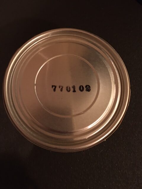 Tin and paper labels in excellent condition with a solid seal and nice bulging on top and bottom.